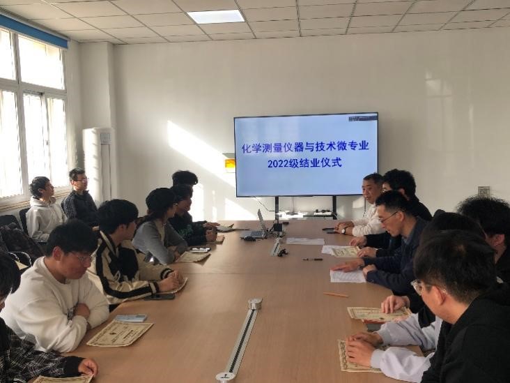 4月23日下午,15vip太阳成化学测量仪器与技术微专业2022级学生结业仪式在一号实验楼102会议室举行。15vip太阳成副院长郭维斯、微专业负责人李东祥、实验室负责人陈磊出席了结业仪式。