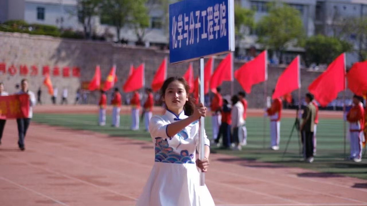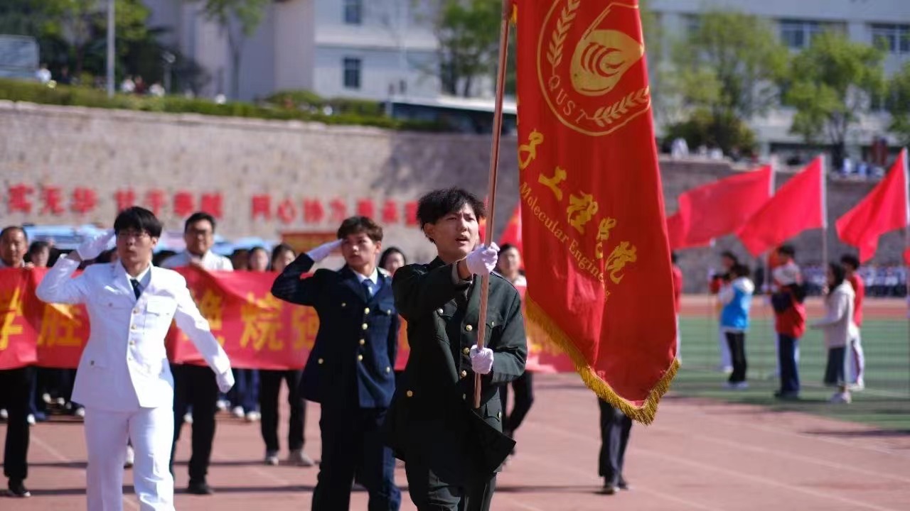 15vip太阳成方队精神抖擞,意气风发笑容灿烂,活力四阔步走向主席台尽显化院师生的赤诚之心和奕奕神采。