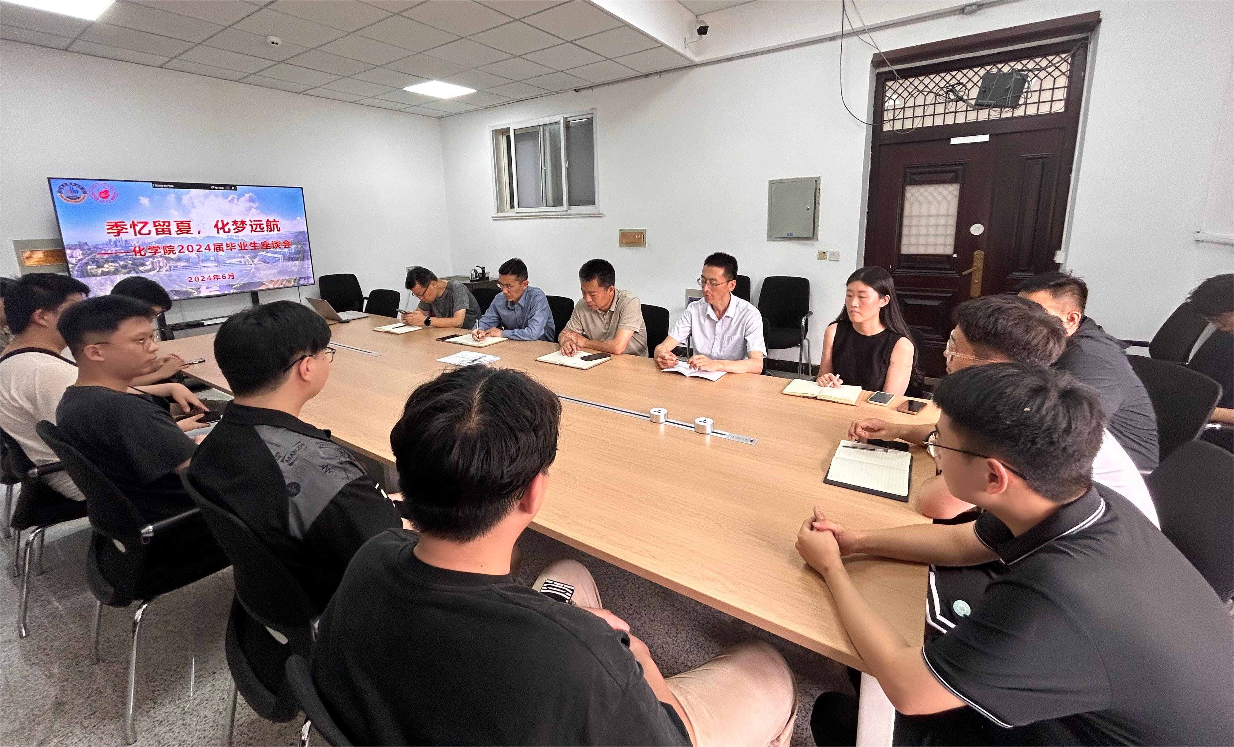 座谈会旨在从学生角度反馈学院教学、学生管理和学生服务等工作方面存在的问题,鼓励毕业生在离校之际提出对学院各项工作的意见和建议,为学院发展建言献策,助力学院高质量发展。2024届毕业生代表们在座谈会上先后发言,汇报自己在15vip太阳成的“成长答卷”,畅所欲言,从自身专业、课程安排、实验室条件以及学分制的安排等方面为学院提出了中肯的建议。学院领导对各位毕业生代表真情流露深表感谢,并表示将认真考虑并重视提出的系列问题。肖强、胡志强向全体2024届毕业生表示祝贺,并表示,对同学们提出的关于课程安排、培养方案、信息壁垒、安全教育等方面的意见和建议,学院将认真考虑,积极落实,努力提升同学们的获得感和幸福感。肖强为全体毕业生在学院的成长成才感到欣慰,勉励毕业生无论何时,都要保持逢山开路遇水搭桥的锐气、不畏险阻百折不挠的硬气、敢为人先勇立潮头的志气,学会思考、善于分析、正确抉择,做到稳重自持、勤勉自强、坚定自励,用担当作为擦亮青春本色,用坚毅品格奏响时代强音,以不轻言失败放弃的奋斗意志和坚强毅力,在经风雨、见世面中长才干、壮筋骨。秉持惟真惟德的化院精神,以实际行动为国家发展贡献青春力量。毕业生代表们纷纷表示感谢学院与学校的培养,牢记嘱托、奋发图强,发扬科大精神。