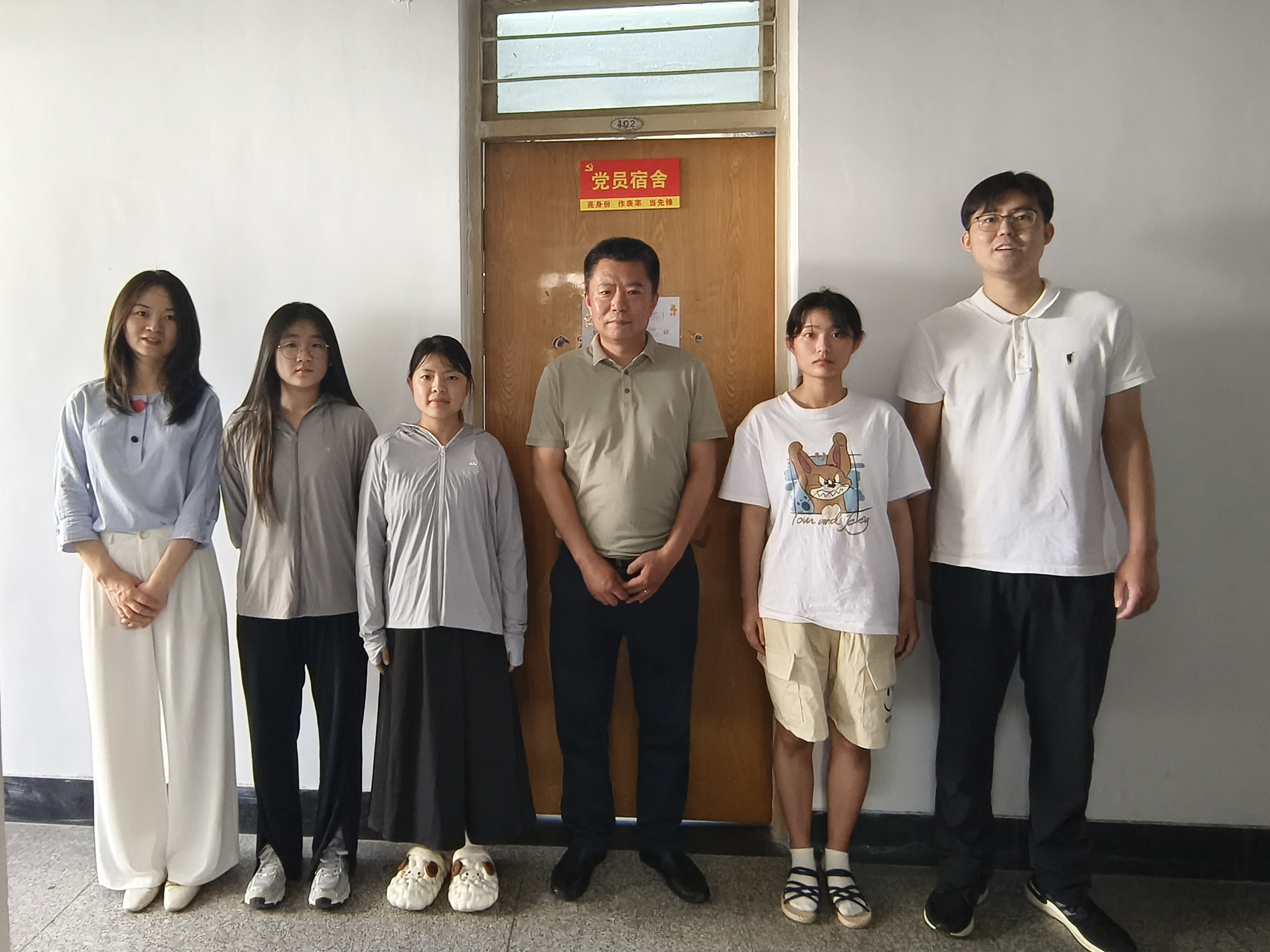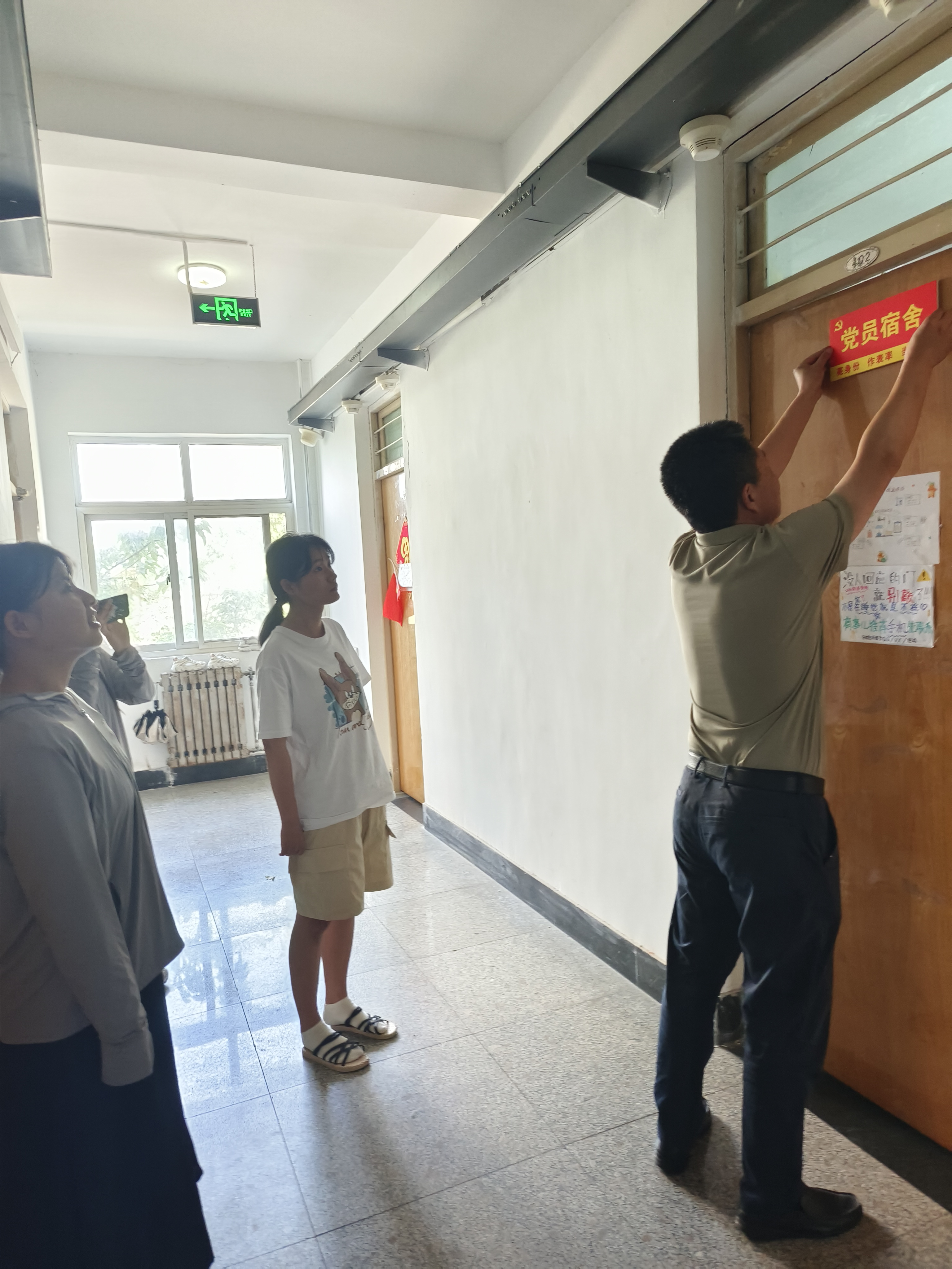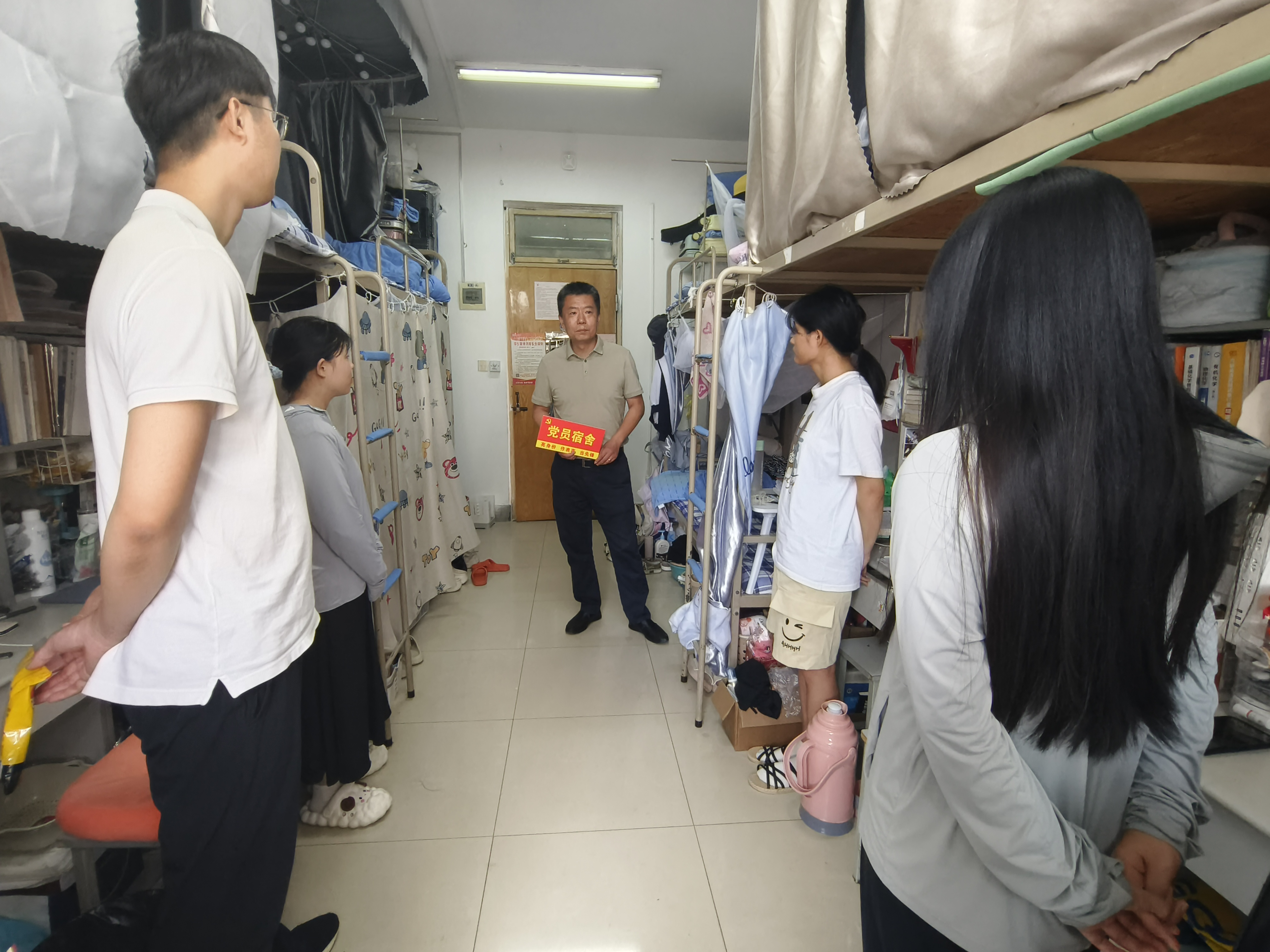 活动中,老师与同学们亲切交流并为学生党员代表颁发“党员宿舍”标牌。刘尧强调一名党员就是一面旗帜,勉励学生党员要以身作则、率先垂范,带头营造“平安、健康、文明、和谐”的宿舍氛围。