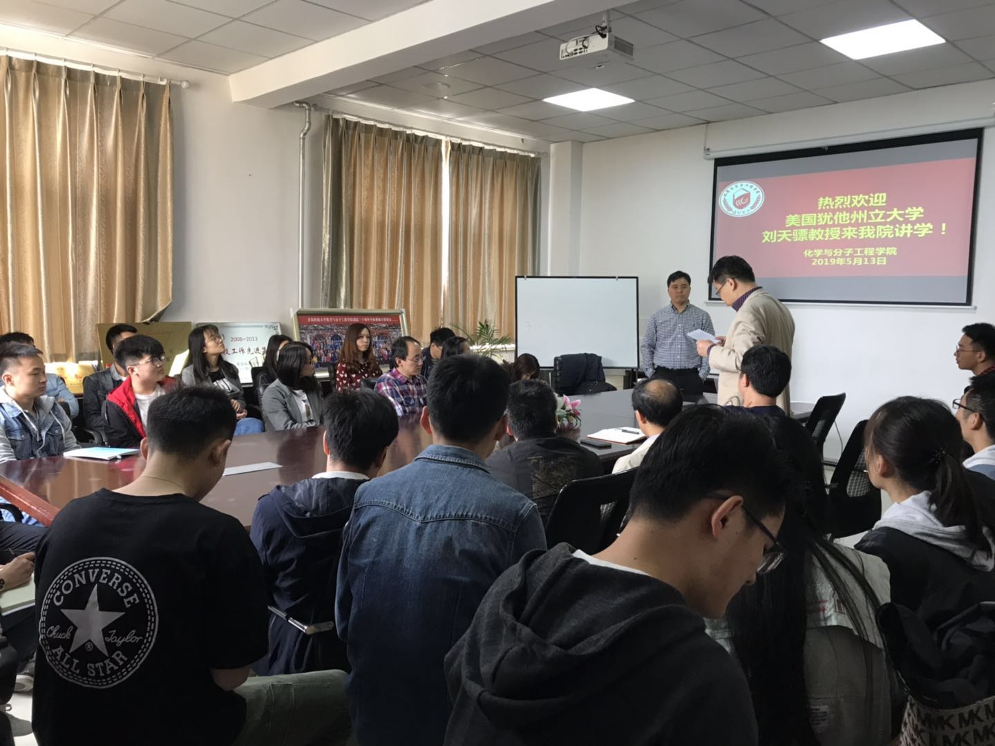 2019年5月13日上午九点,美国犹他州立大学刘天骠教授来我院访问,并在一号实验楼302会议室作了题为“Developing New Battery Chemistries for Energy Storage”的学术报告。报告会由15vip太阳成副院长胡志强教授主持,15vip太阳成、高分子学院等相关学院和专业的数十名师生听取了报告,并进行了积极交流。