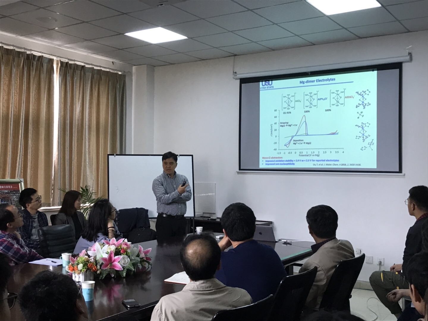 刘天骠教授是新型有机液流电池和镁离子电池的开拓者,他首先介绍了现有商业电池等储能设备存在的局限和不足,然后介绍了其课题组在镁电解液开发及其在高能量密度镁离子电池中的应用中取得的最新进展,同时着重介绍了基于紫精、二茂铁、亚铁氰化物等分子开发的水相及非水相氧化还原有机液流电池系统(AORFBs and NAORFBs),并提及了课题组在电池化学研究中的做出其它亮点工作,激发了老师和同学们的浓厚兴趣。报告会现场气氛热烈,座无虚席,在座师生们踊跃提问,与刘教授展开了热烈的互动与交流。报告结束后,同学们纷纷表示受益匪浅。