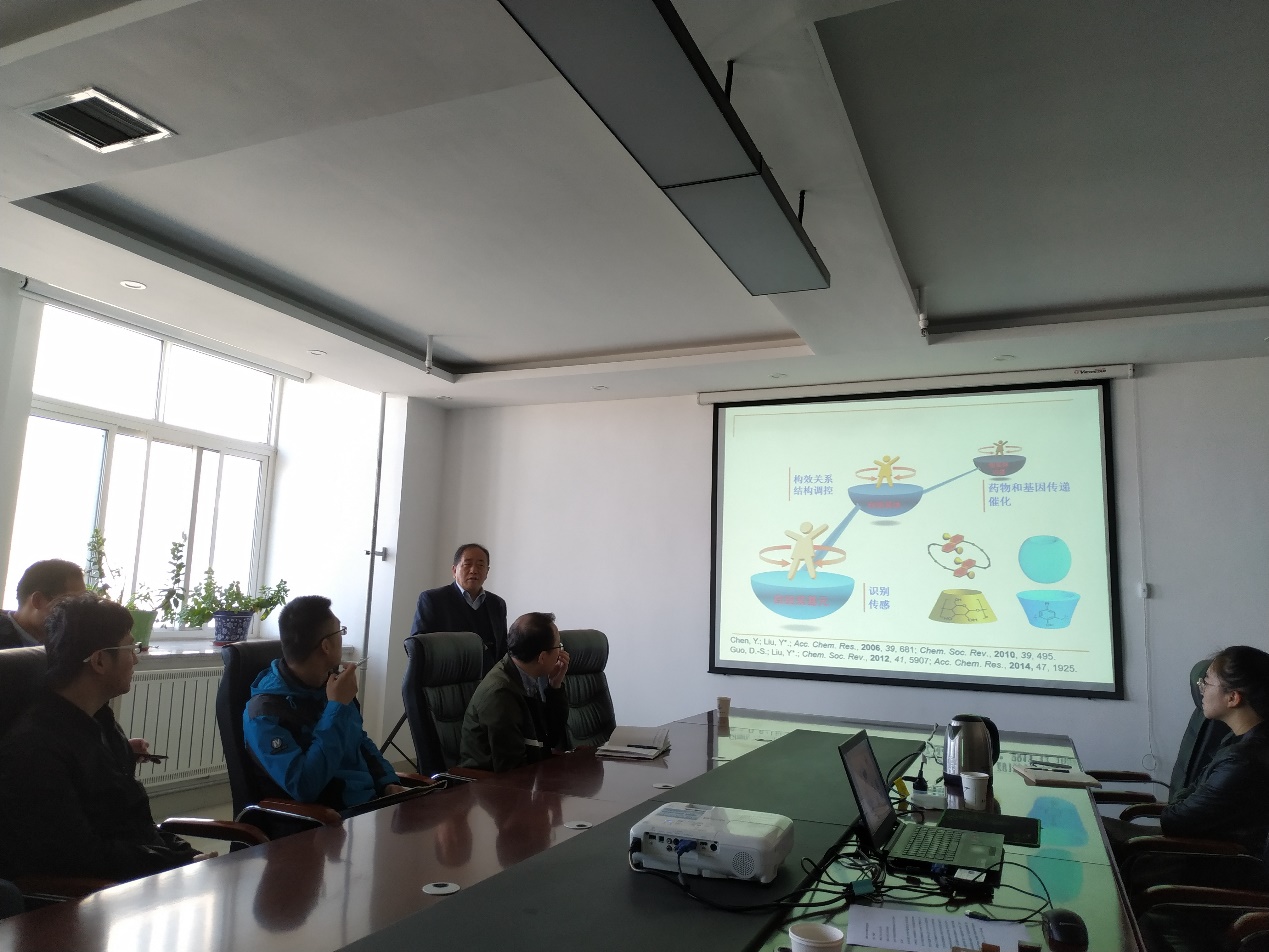 刘育教授详细介绍了课题组近年来在超分子自组装和纳米超分子领域的功能应用研究成果。刘育课题组基于超分子大环主体,设计了一系列的可调控纳米超分子组装体,实现了在分子机器、超分子催化、超分子软材料、模块自组装和超分子药物传输等方向的应用;通过光刺激和超分子催化实现了化学键的非常规断裂和重组;构筑纳米超分子聚集体实现了超分子软材料的光、pH、化学输入控制的形貌调控、多刺激响应和自愈合功能;通过精确控制的超分子组装体实现了抗癌药物的可控传输和靶向性等。报告在热烈的掌声中落下帷幕。报告结束后,刘育教授和现场的老师、同学们进行了多方面的交流与讨论。