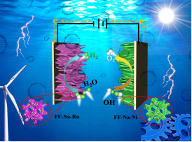 此外,氢能因其清洁、可再生的优点而被认为有望取代传统的化石燃料,减少CO2排放。其中电解水制氢是一种绿色、高效制备氢气的途经,而开发高效的电催化剂对于提升催化效率及降低能耗至关重要。鉴于此,应用化学腐蚀方法在泡沫铁(FF)基底上快速合成无定形RuO2修饰的FeOOH纳米片(FF-Na-Ru)。该FF-Na-Ru催化剂具有显著的HER活性和全水解性能,并可由间歇性阳光、风能和热能等可持续能源驱动。与传统的水热法和电化学沉积等方法相比较,化学腐蚀具有能耗小、效率高、安全性等特点。本研究所提出的设计策略在实际应用中显示出巨大的潜力,为合成高效电催化剂提供了新的思路。