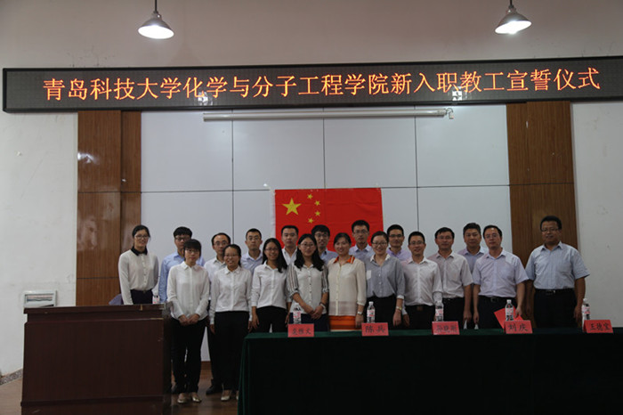 9月13日,15vip太阳成在四方校区讲学厅举行新进教师宣誓大会,会议由学院党总支书记刘庆主持,副院长王德宝、党总支副书记孙晓刚、副院长罗细亮等学院领导出席了本次大会。在罗细亮的带领下,15位新进教师面对国旗庄严宣誓。