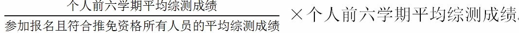 (2)全院参与评选名额推免分数计算:个人总成绩=相对个人综测成绩+附加分(附加分标准见附录),按此方法进行专业总成绩排名,从优推免。