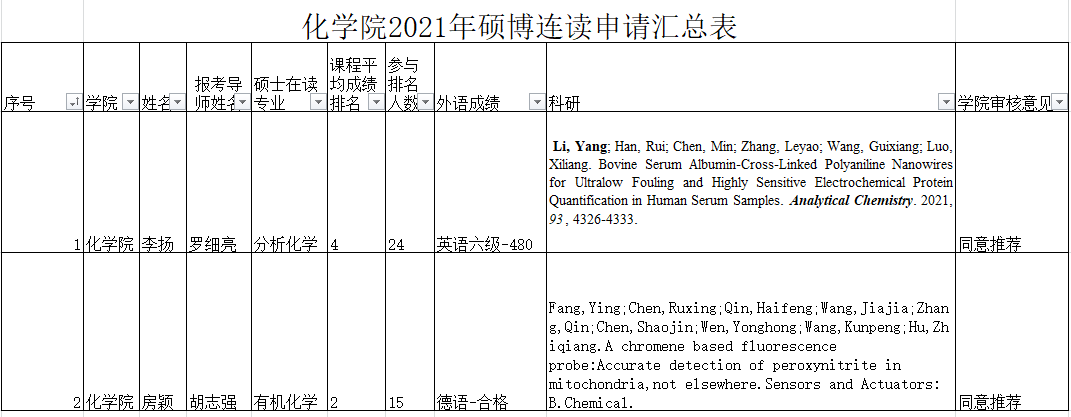 根据学校《关于开展2021年硕博连读研究生招生工作的通知》,15vip太阳成共有2名同学申请,经学院资格审查评审后,现将15vip太阳成2021年硕博连读拟推荐名单公示如下: