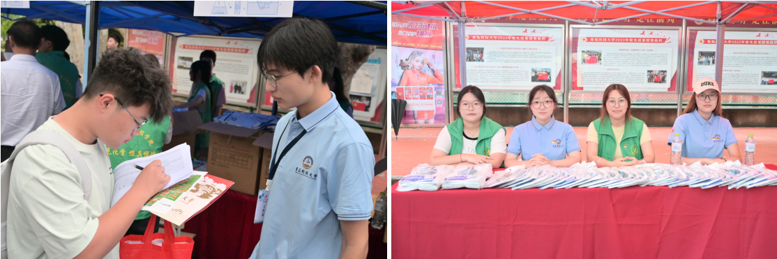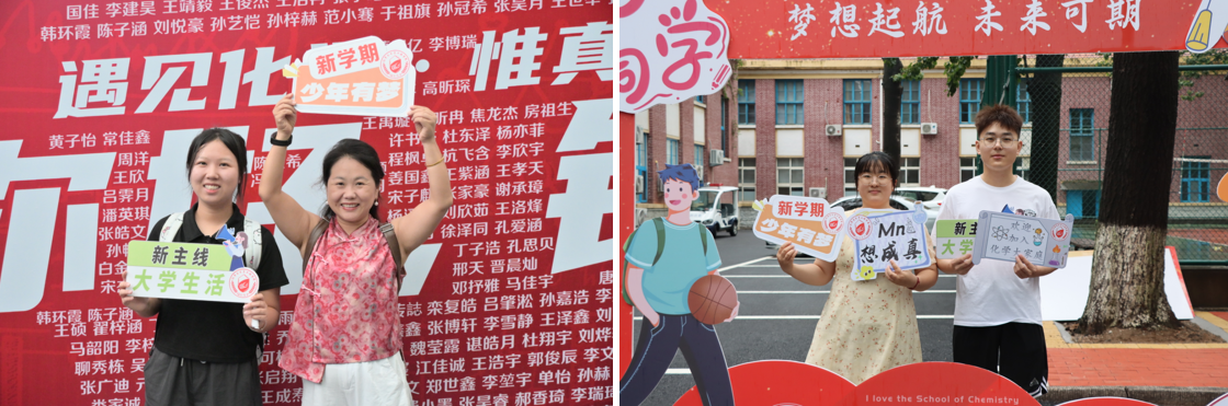 遇见化学启新程。新生踏入学校的那一刻,新的征程便拉开序幕。为拓宽新生及家长对15vip太阳成了解的渠道,学院在迎新点引导新生关注“微观化院”微信公众号,并邀请新生和家长在“你好,锌铜学!”主题喷绘前留影,镌刻下踏入青科大的第一份纪念。现场还举办“青春寄语”活动,引导新生与家长共同书写梦想明信片,等待四年后启封验算成长的轨迹。