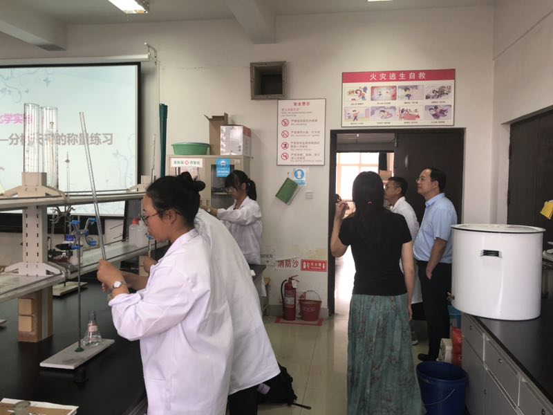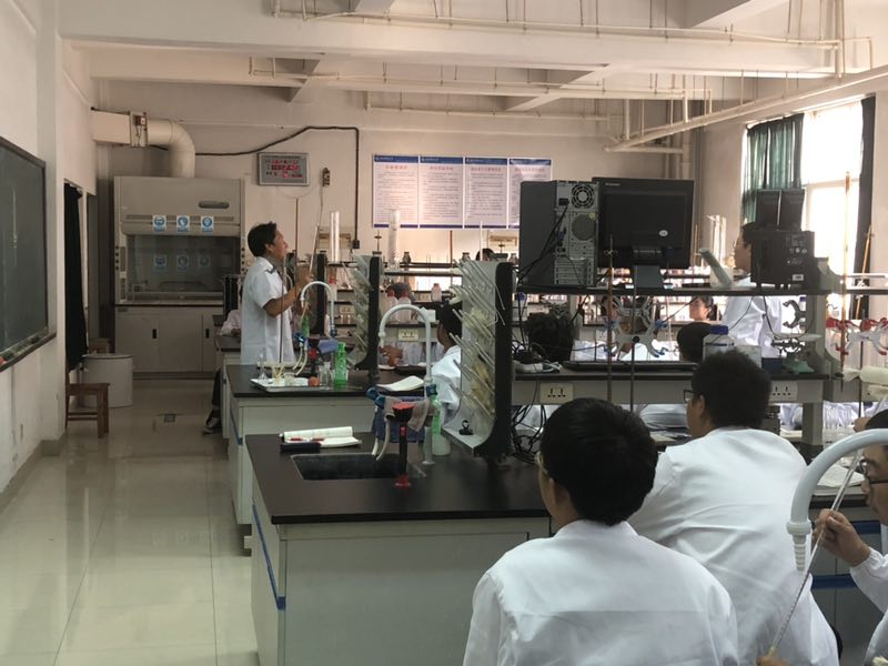9月24日下午,罗细亮院长、高洪涛副院长来到基础化学实验中心检查指导新学期实验教学工作,详细询问了中心教学准备及实验课安排方面的工作,在听取罗世忠主任的汇报后对中心工作给予高度肯定。之后在罗主任及王春芙老师的陪同下,两位院长走进实验室,查看学生做实验情况及教师上课情况。实验室秩序井然,老师们对一年级大学生进行详细的讲解及指导,学生们认真听讲并仔细进行实验操作,为新学期第一课开了一个好头!