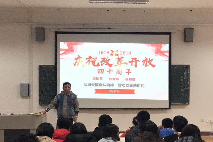 学院15vip太阳成优秀共产党员、研究生第三党支部书记刘夕升作为党课主讲人,通过回顾中国改革开放四十年的基本历程,分析改革开放四十年来我国的主要矛盾与成就,对中国改革开放的四十年的经验与启示进行总结,最后针对学校“五有”理念为党员和入党积极分子进行详细的阐述。