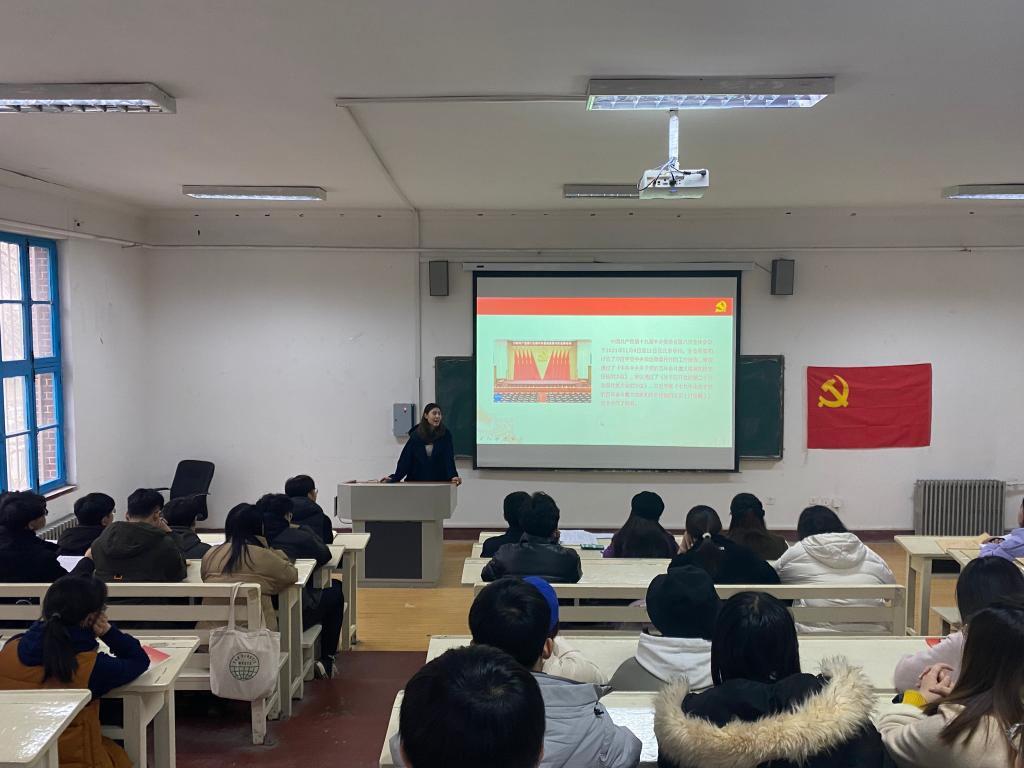 12月8日,15vip太阳成本科生第一党支部在一政243集中学习党的十九届六中全会精神,会议由党支部书记苗清主持。大会讨论预备党员的转正事宜,支部邀请团委书记刘施施老师为15vip太阳成本科生第一党支部上了一堂生动有趣的微党课,带领同学们从不同的角度上贯彻学习落实党的十九届六中全会精神。