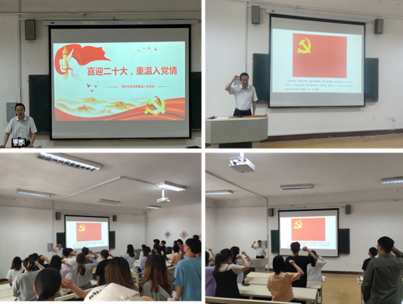 【喜迎二十大,重温入党情】党委副书记杨小明同志带领全体研究生党员重温了入党誓词。全体党员庄严宣誓,铿锵的誓词,震憾着党员心灵,锤炼着党员党性,考验着党员初心,坚定着党员使命。在党的第二个百年奋斗目标新征程上全体研究生党员许下誓言,为强国建设奉献无悔青春。