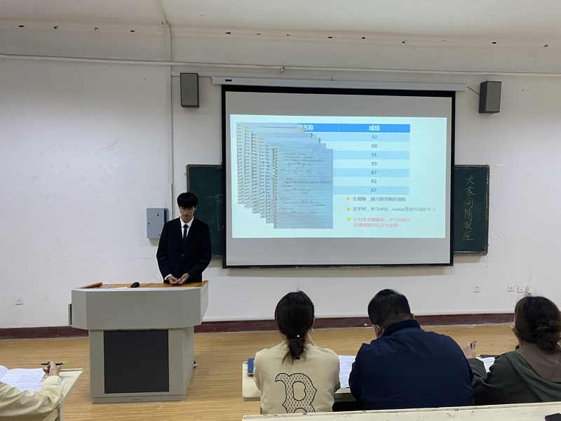 会上,学院负责奖学金工作的昝祺祺老师首先对国家奖学金的评选条件以及本次答辩会评审的流程进行了详细介绍;随后,10名申请人依次进行答辩,答辩者们分别从学习成绩、科研成果、志愿服务以及社会实践等各方面讲述了自己在大学期间获得过的奖励、荣誉以及经验心得,并通过精美的PPT呈现给大家。答辩会结束后,评委随即展开了激烈的讨论,对他们的专业成绩、综合表现、答辩会成绩进行了综合考核。