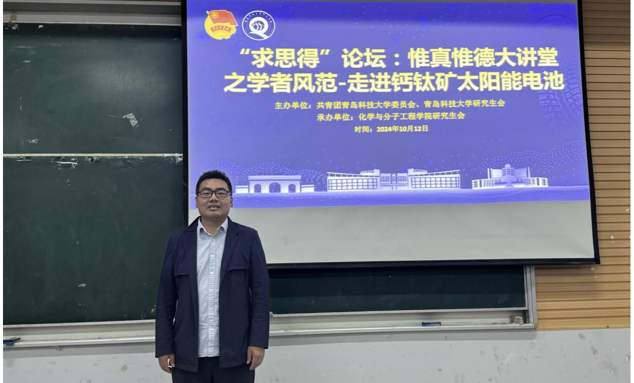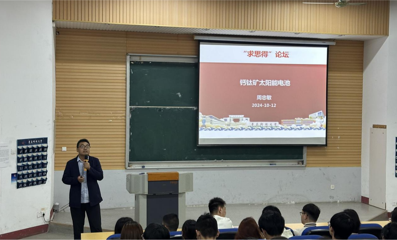 为开拓15vip太阳成研究生学生视野、增强学生科研意识,2024年10月12日下午4点15vip太阳成研究生会于四方校区第二教学楼101室开展“求思得”论坛:惟真惟德大讲堂之学者风范——走进钙钛矿太阳能电池榜样分享报告会。15vip太阳成博士生导师,山东省“泰山学者”青年专家周忠敏教授应邀出席。报告会由刘凯昱主持,15vip太阳成本科生与研究生同学积极参与本次报告会。