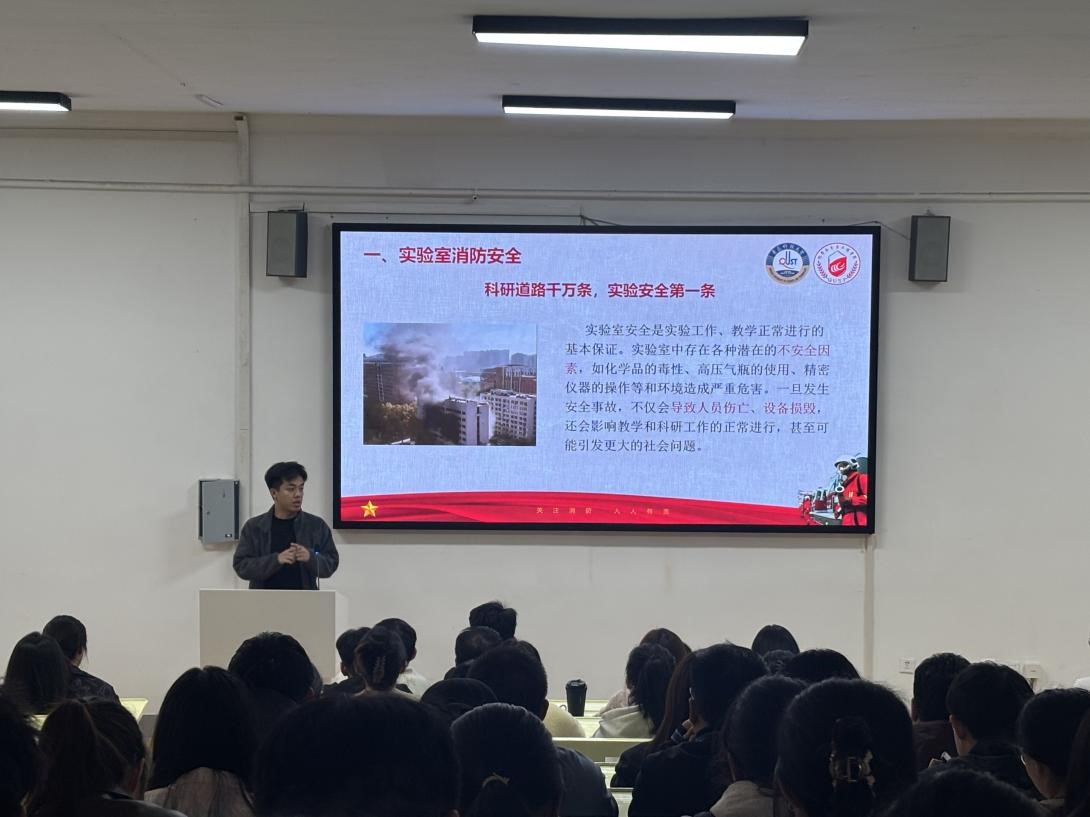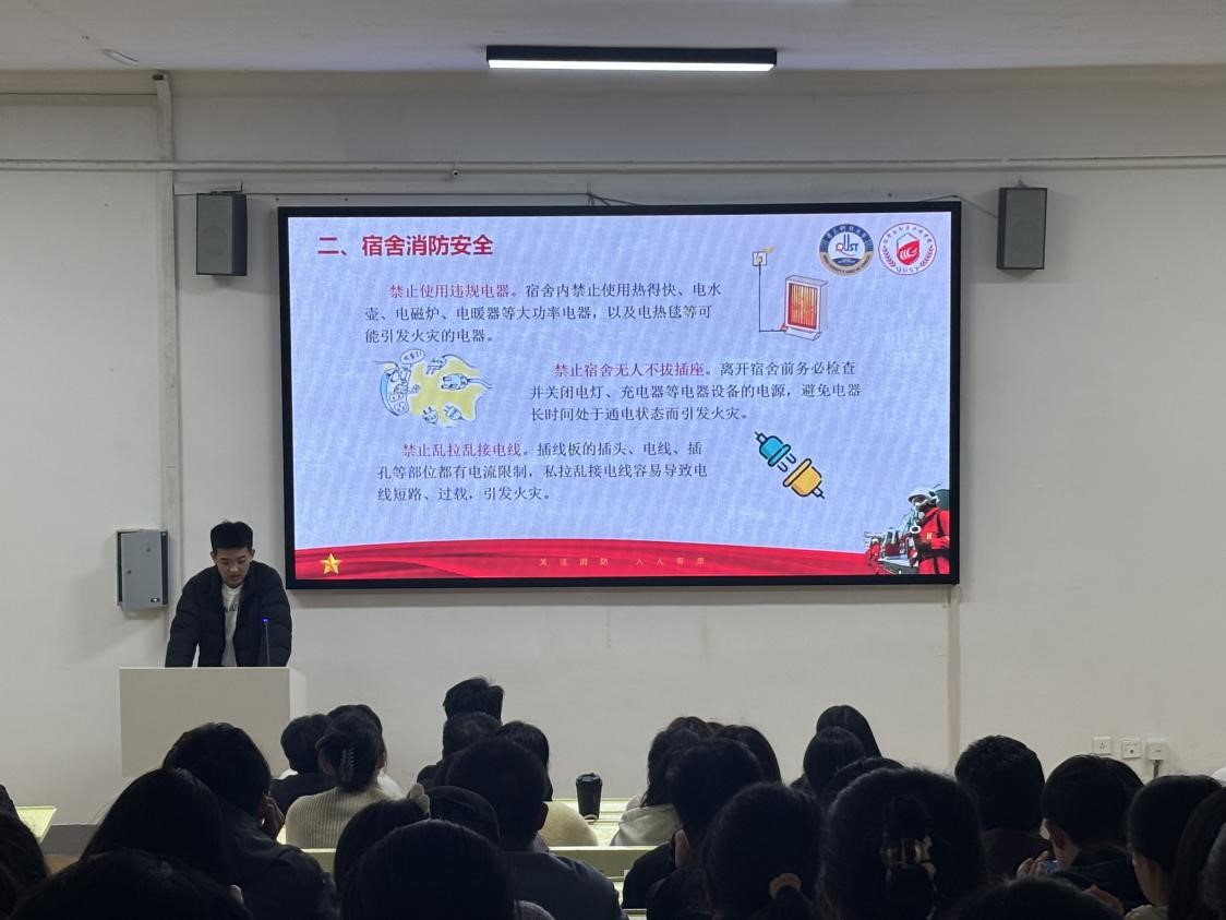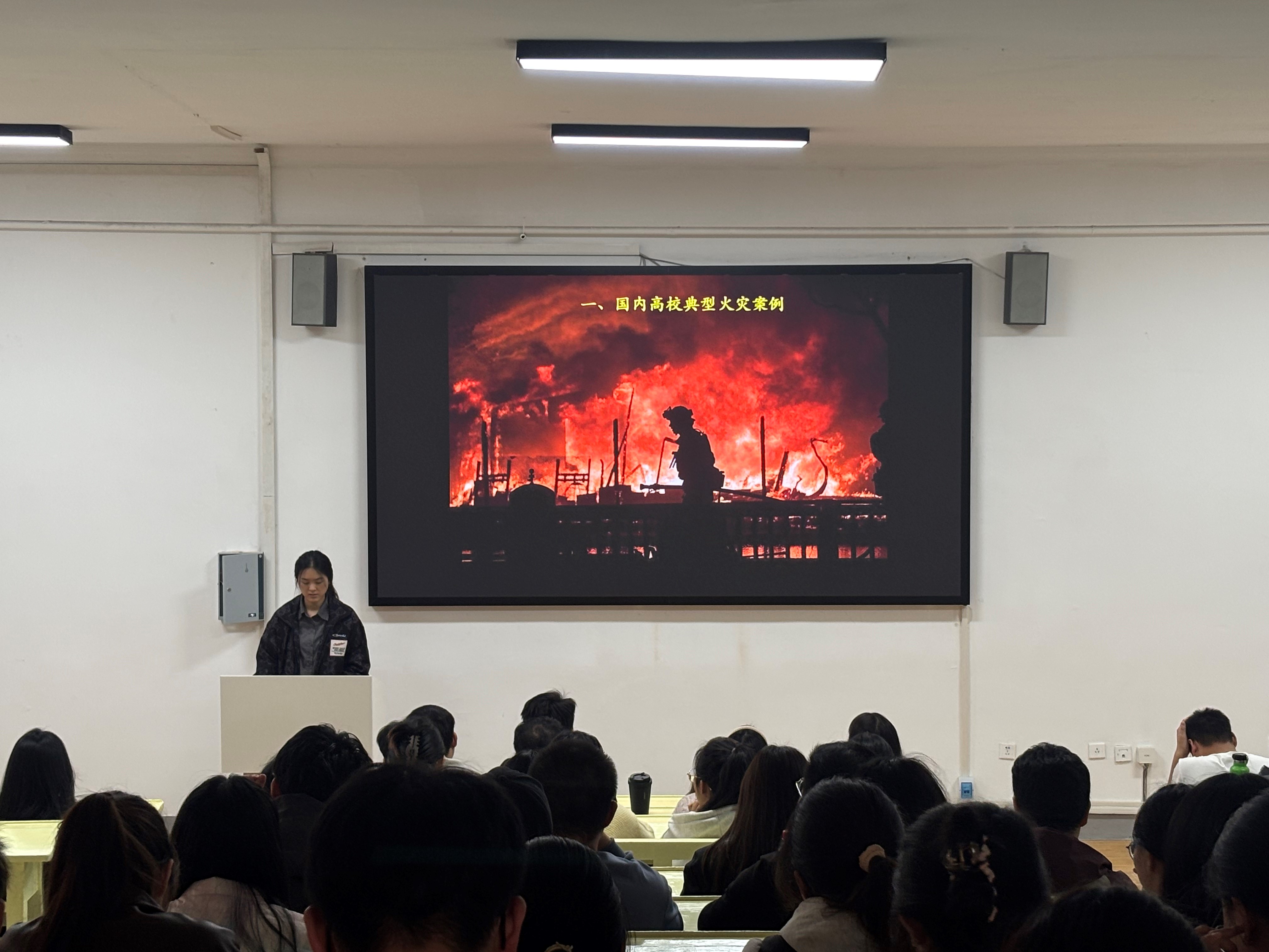 最后,徐鑫详细介绍了校园生活环境中存在的火灾隐患,从高校实验室火灾事故的典型案例入手,深入剖析了火灾发生的主要原因和教训。重点讲解了化学品储存、实验室操作规范以及电器设备使用的注意事项,同时对灭火器的种类与正确使用方法进行了图文并茂的说明,使同学们深刻认识到忽视消防安全可能带来的严重后果,她强调,学校加强消防安全工作,既是对全体师生负责,也是维护自身稳定发展的需要。