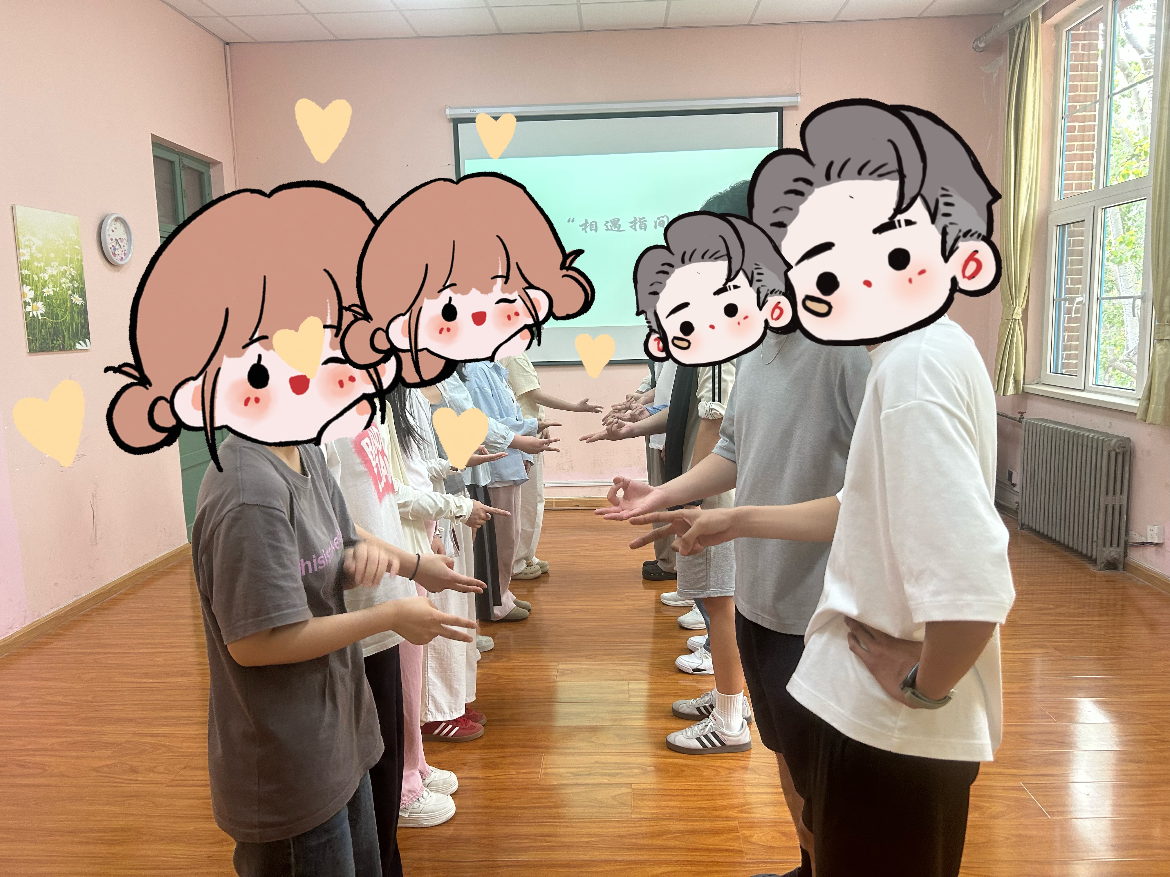 活动伊始,邹亚平老师精心组织了“相遇指间”破冰游戏。同学们在老师的引导下有序参与,伸出手指与身边同学互动。在这一过程中,原本稍显拘谨的氛围逐渐消散,大家在轻松有趣的互动中,迅速拉近了彼此间的距离,脸上洋溢着轻松愉快的笑容,为后续活动的开展营造出了融洽和谐的氛围。
