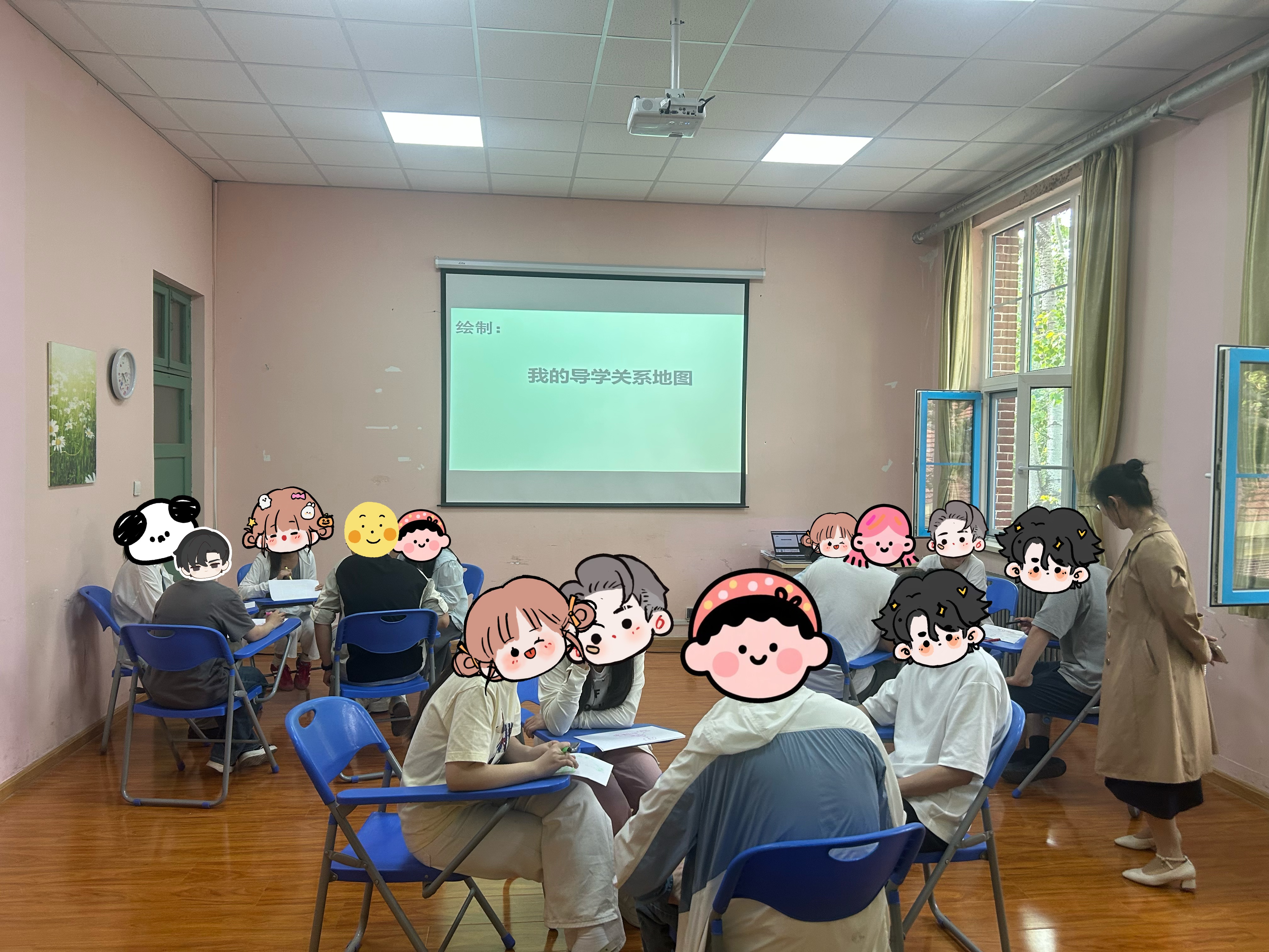 随后,活动进入“我的导学关系地图”绘制环节。同学们围坐在一起分组热烈讨论,结合自身经历认真梳理与导师的关系模式。大家各抒己见,在交流分享中不断增进对导学关系的理解。