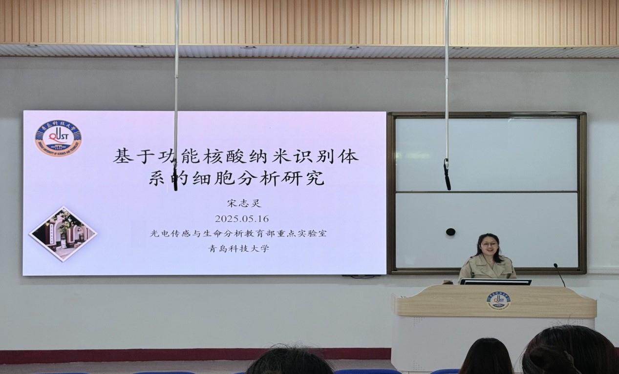 报告伊始,宋志灵老师聚焦“化学生物传感与生命分析”方向,系统介绍其在生物成像、光学分析及癌症诊疗等前沿领域的研究成果,并结合具体研究案例,从问题发现、思路凝练、成果转等维度,生动展现从基础研究到临床应用的全链条创新路径,为研究生学术成长提供兼具引领性和操作性的参考。