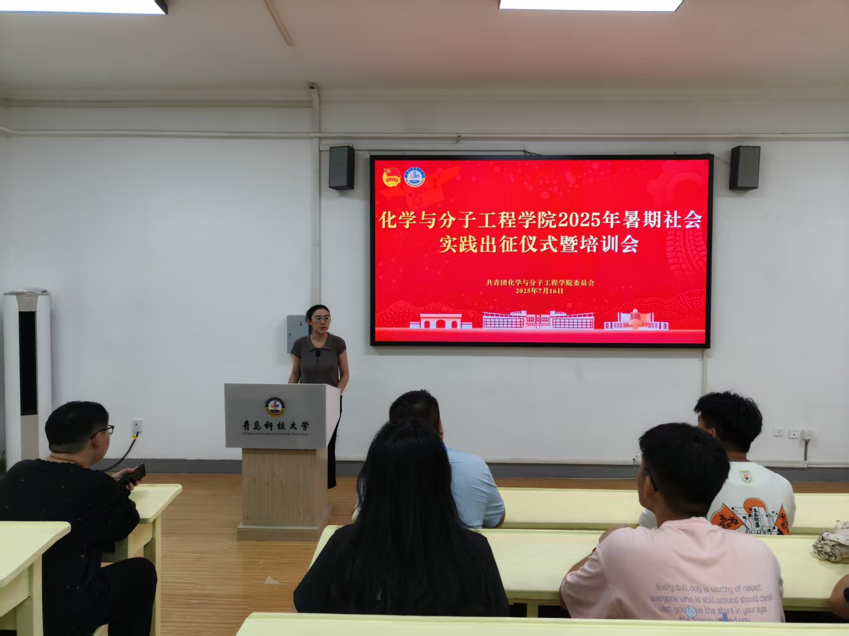 仪式上,陶亚亚回顾了学院2024年暑期社会实践取得的成果,整体介绍了2025年暑期社会实践总体安排、实践内容和注意事项等相关内容。她提出“三下乡”是青年学子深入了解国情、感知时代、服务社会、增长才干的重要契机,鼓励大家应满怀热情,以严谨的态度和务实的作风投身实践,感受时代脉搏,书写青春答卷。