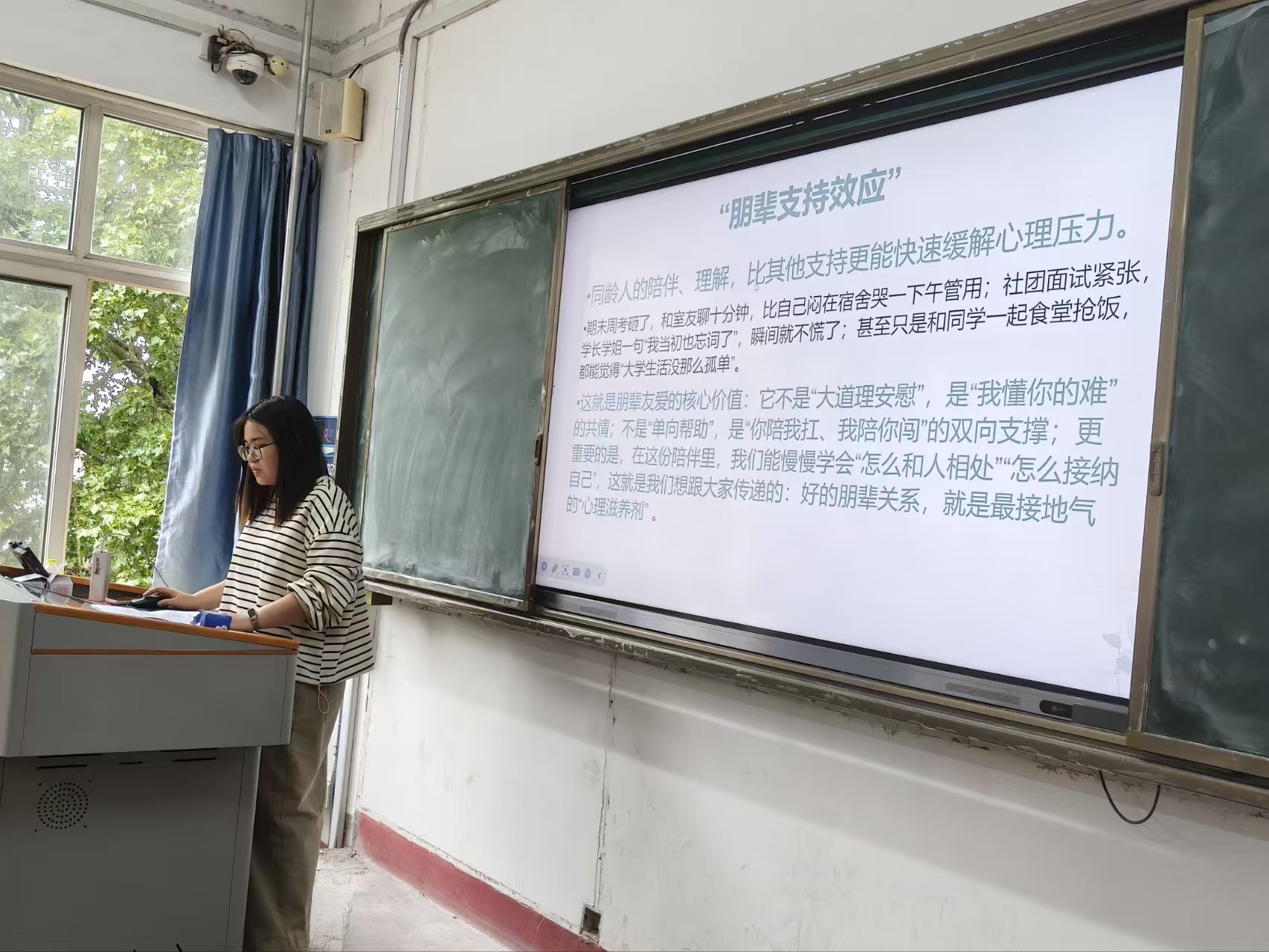 活动伊始,主持人围绕“朋辈支持的科学原理”展开阐述,强调同龄人之间的情感共鸣对缓解心理压力的独特作用,并将健康的朋辈关系定义为大学生成长路上的“心理护航舰”。随后,通过案例分析与方法论讲解,系统介绍了建立良好人际关系的核心技巧。