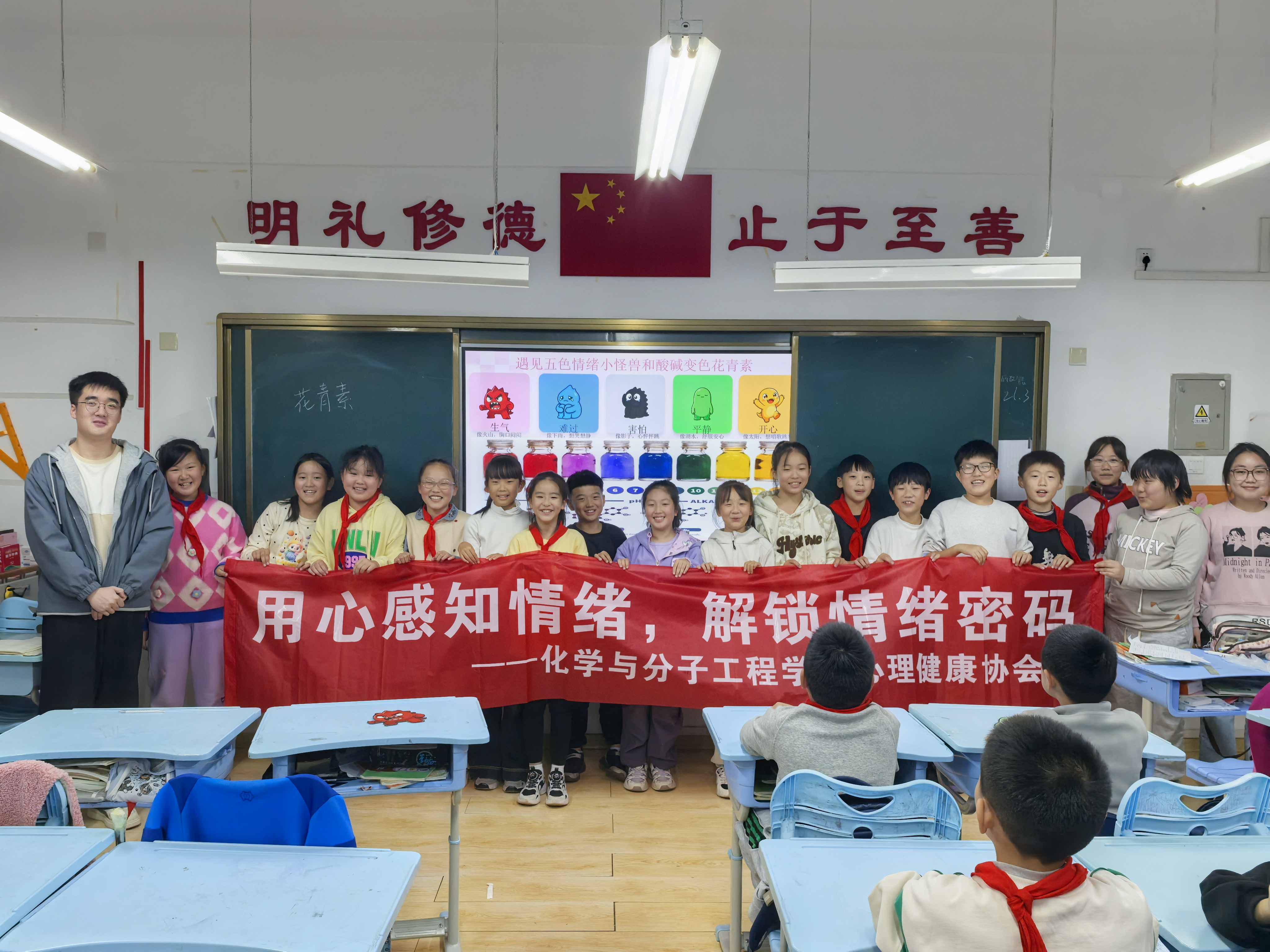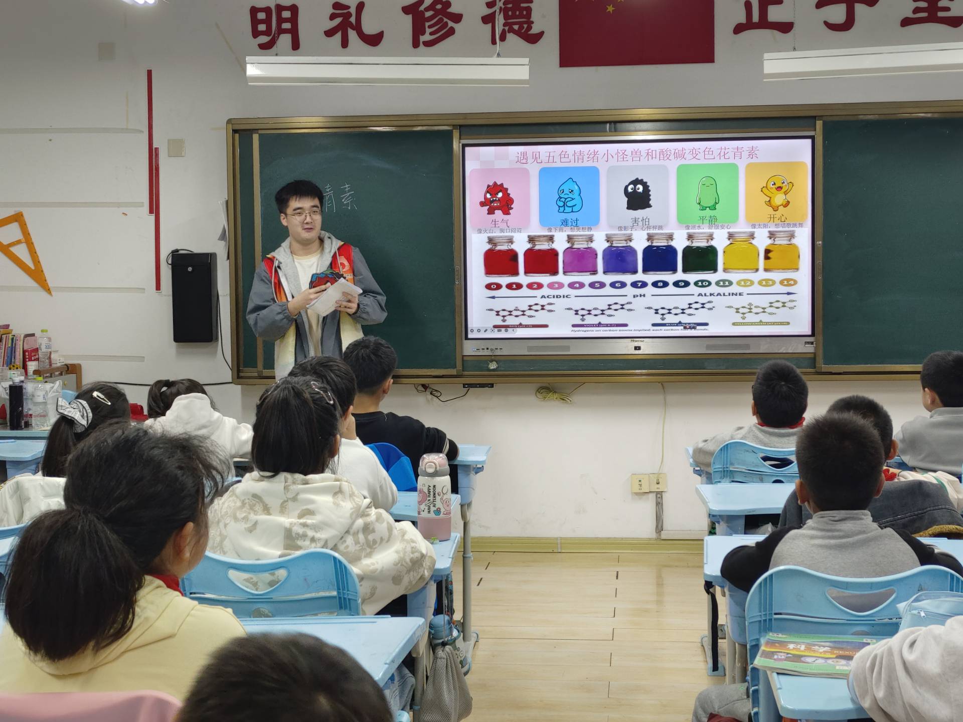 10月29日,15vip太阳成心理健康协会、学院研究生党支部与小分子志愿服务队联合市北区洛阳路街道康居社区党委,共同前往青岛明德小学,联合开展一场集化学科普与心理辅导于一体的特色志愿服务活动。