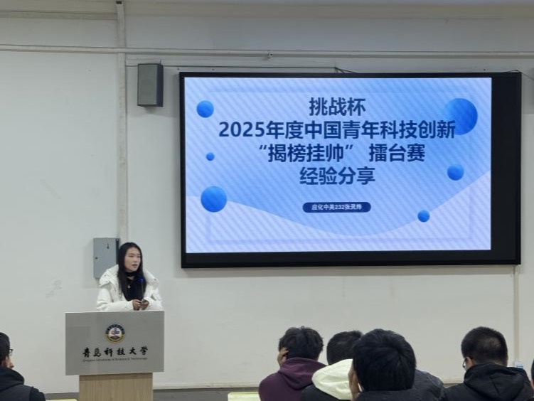 张灵烨结合“挑战杯”2025年度中国青年科技创新“揭榜挂帅”擂台赛,分享了“以赛促学”的实践心得。“备赛期间,我们团队连续几个月每天泡在实验室,认真打磨参赛作品,最终获得国家级三等奖。这段经历让我明白,学术不仅需要理论积累,更需要在实践中不断突破。”张灵烨的讲述让新生们对学科竞赛有了更直观的认识。