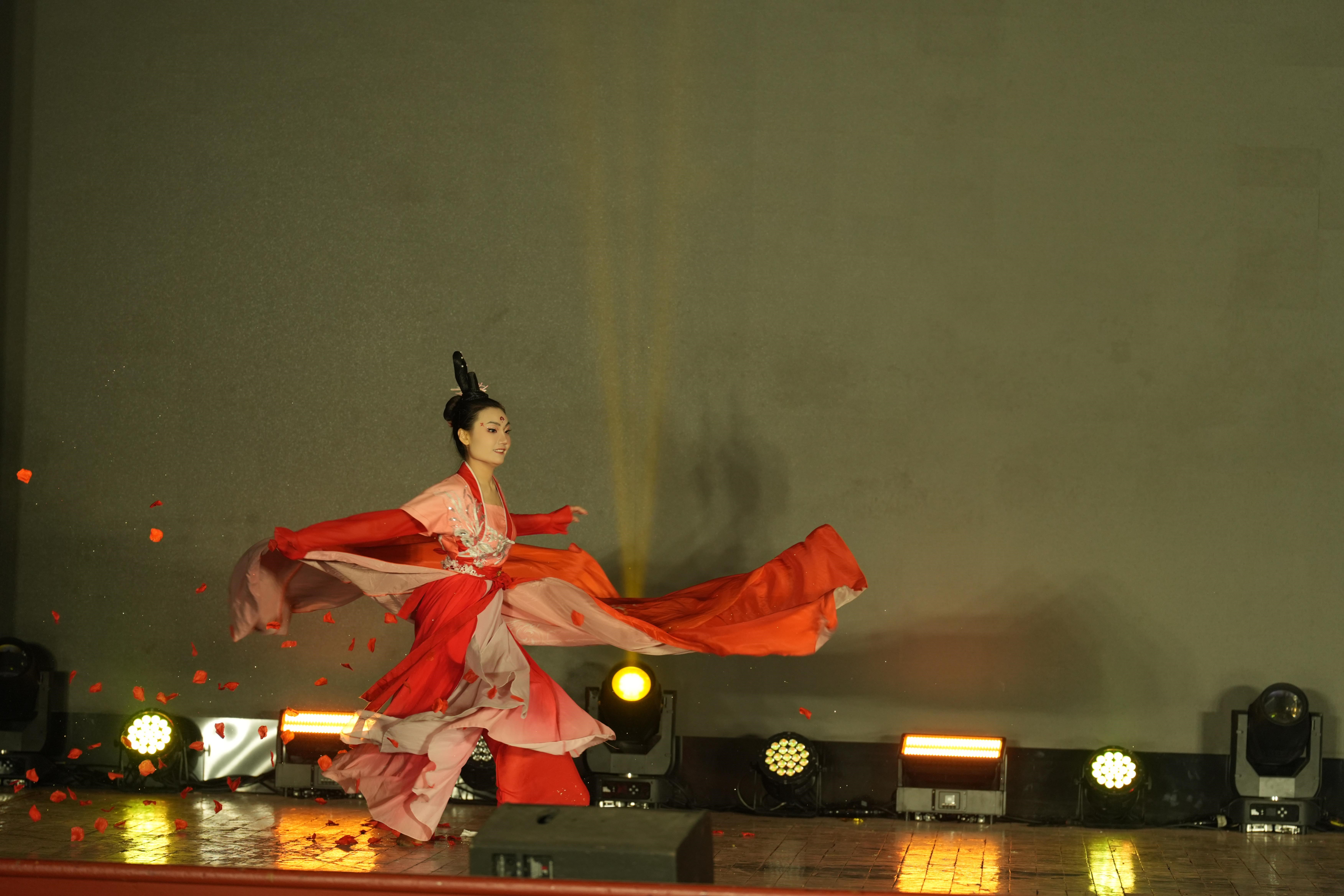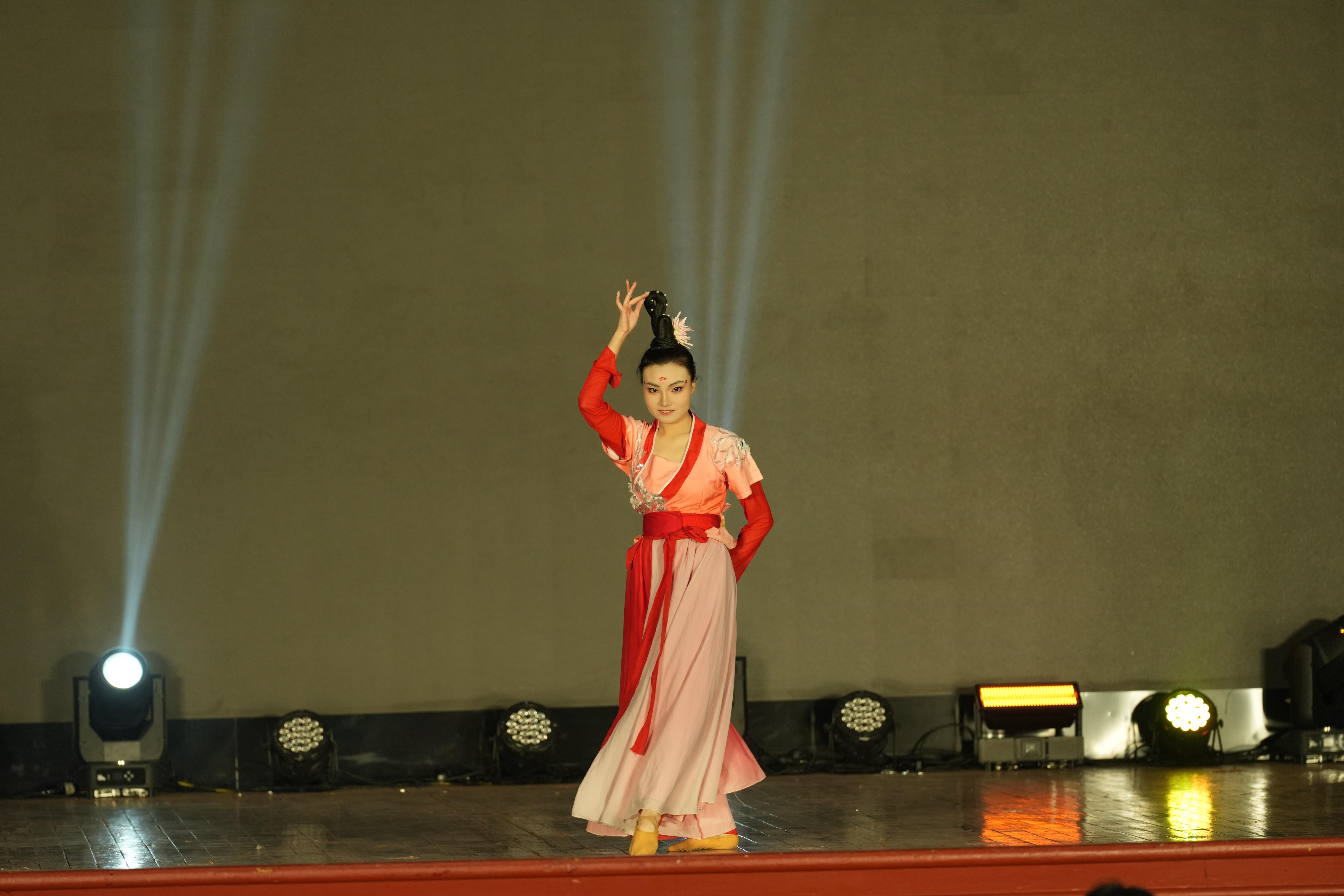 备赛期间,韩菲儿针对舞蹈的主题诠释、动作细节打磨及情感表达精准度等核心问题,她反复钻研、细致优化,从动作技巧到舞台表现力等方面逐一进行点拨提升。决赛现场,韩菲儿身着红橙色民族舞服装登场,伴随悠扬乐曲,她完成跳跃、旋转、下腰等一系列舞蹈动作,动作规范精准、表情表达到位,通过舞蹈展现了传统文化艺术的独特魅力,其表现获得现场观众一致认可。