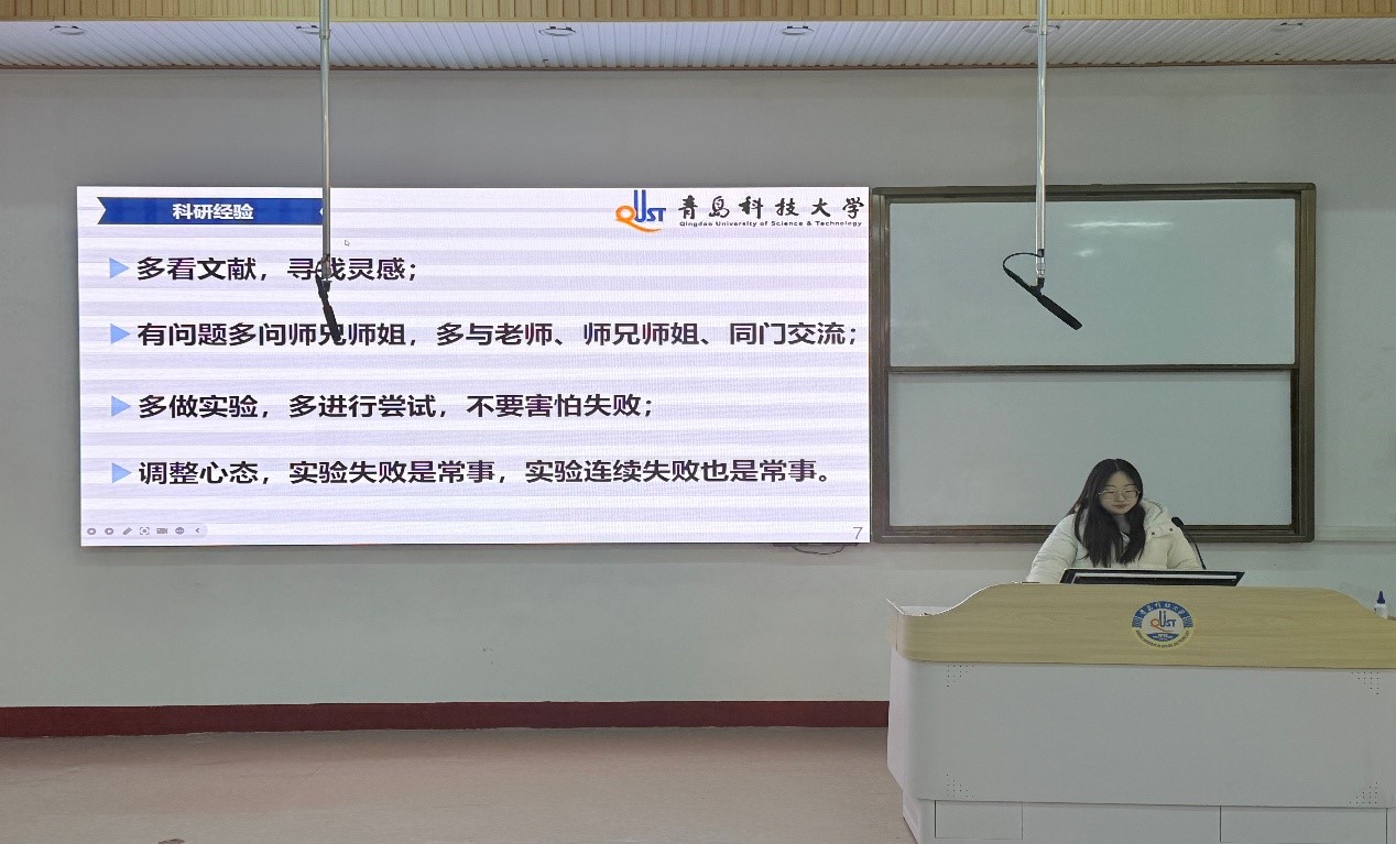 为充分发挥优秀学生的示范引领作用,助力学生明确前进方向、做好学业规划,12月26日,学院研究生会于第二教学楼101室举办惟真惟德大讲堂之国奖风采:照亮催化探索之路。本次分享会聚焦在科研领域取得突出成果的优秀学子,特邀国家奖学金获得者兰梦娇、李雅靖、李静、宁元贞担任分享嘉宾,王执担任主持人,全体研究生积极参与。