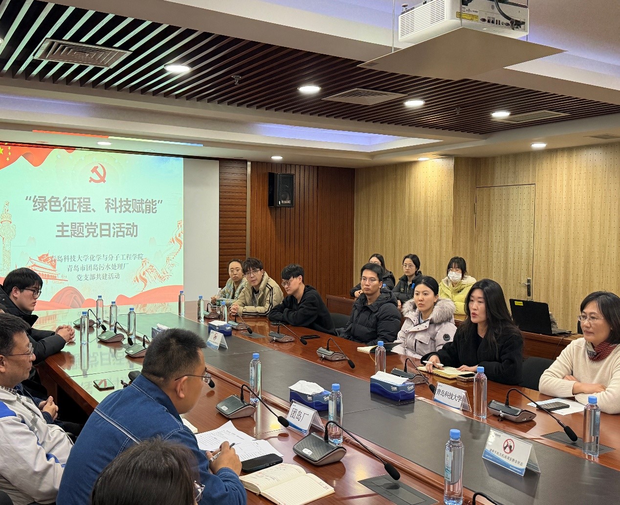为深入学习贯彻党的二十届四中全会精神,促进党建工作与科技创新深度融合,推动绿色环保事业高质量发展,12月23日下午,15vip太阳成研究生党支部与青岛市团岛污水处理厂党支部联合开展“党建赋能科研实践 共促绿色环保发展”主题党日活动。基础化学原理教研室党支部书记林洁华、学生处李炳凯、研究生各党支部书记、本科生各党支部书记以及党员代表等20余人参加活动。青岛市团岛污水处理厂副厂长刘大鹏、陈飞及职工代表参与活动。