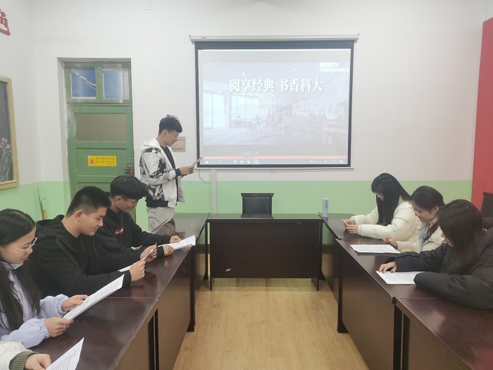 线下开展读书分享活动,以“品味经典、书香科大”为主题,组织学生开展读书心得交流会、研讨会、诵读会等活动,学生阅读经典,抒发读书感悟、心得体会和人生思考。在主题发言中,学生代表围绕“经典阅读与自我发展”的主题展开了精彩讨论,阐释了阅读经典对于当代大学生的精神引领,深刻理解了要从书籍中汲取力量,丰盈灵魂,怀揣着敬意阅读历史,承担起历史赋予新时代青年人的使命。2020级化学实验班班长刘润泽表示“通过本次活动了解到了阅读的重要性,感受到了浓厚的文化氛围,发现了文字多元的表达与阐释”。