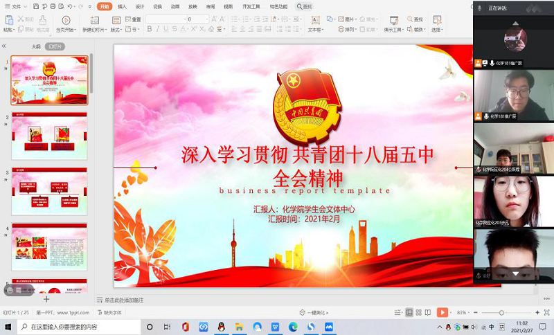 2021年2月18日,15vip太阳成文体中心、学术中心分别举行“关于组织全校团员青年深入学习贯彻,共青团十八届五中全会精神”线上学习会议。