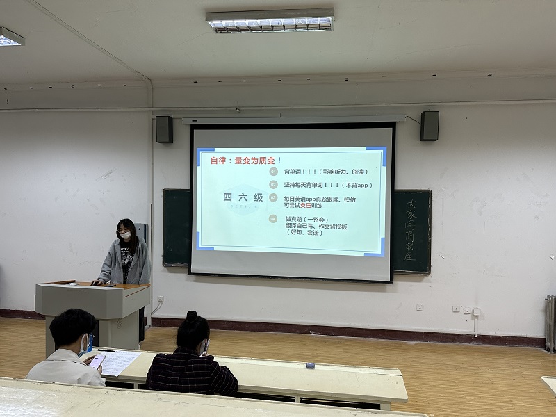 分享会上,各个专业的学长学姐们分别介绍了大学三年的学习生活经历,分享了在学习生活等方面特别是为保研目标而努力奋斗的经验和体会,详细介绍了保研的基本流程、搜集保研信息的相关渠道、往届学生的推免情况、保研前期的准备工作、夏令营和“九推”的具体说明、适宜争取的加分机会、各大高校的考试重点、历届保研真题等,他们结合自己的专业和保研院校提出了针对性的建议。其中,李婉婷同学介绍了保研各个环节中的注意事项,强调了信息交流中要注意沟通方式。刘德洋同学分享了面试中随机应变的小技巧,提醒大家在面试中保持冷静,沉着应对。孙希程同学分享了一年来在学习、比赛中取得的成绩,列出了操作性较强的提升机会。大家还通过各自的简历,展示了大学三年以来在各方面做出的努力和取得的优秀成果,比如科创竞赛、英语水平、论文的发表等,对于信息的收集、保研的准备推荐了优质公众号、复习资料的分享等。
