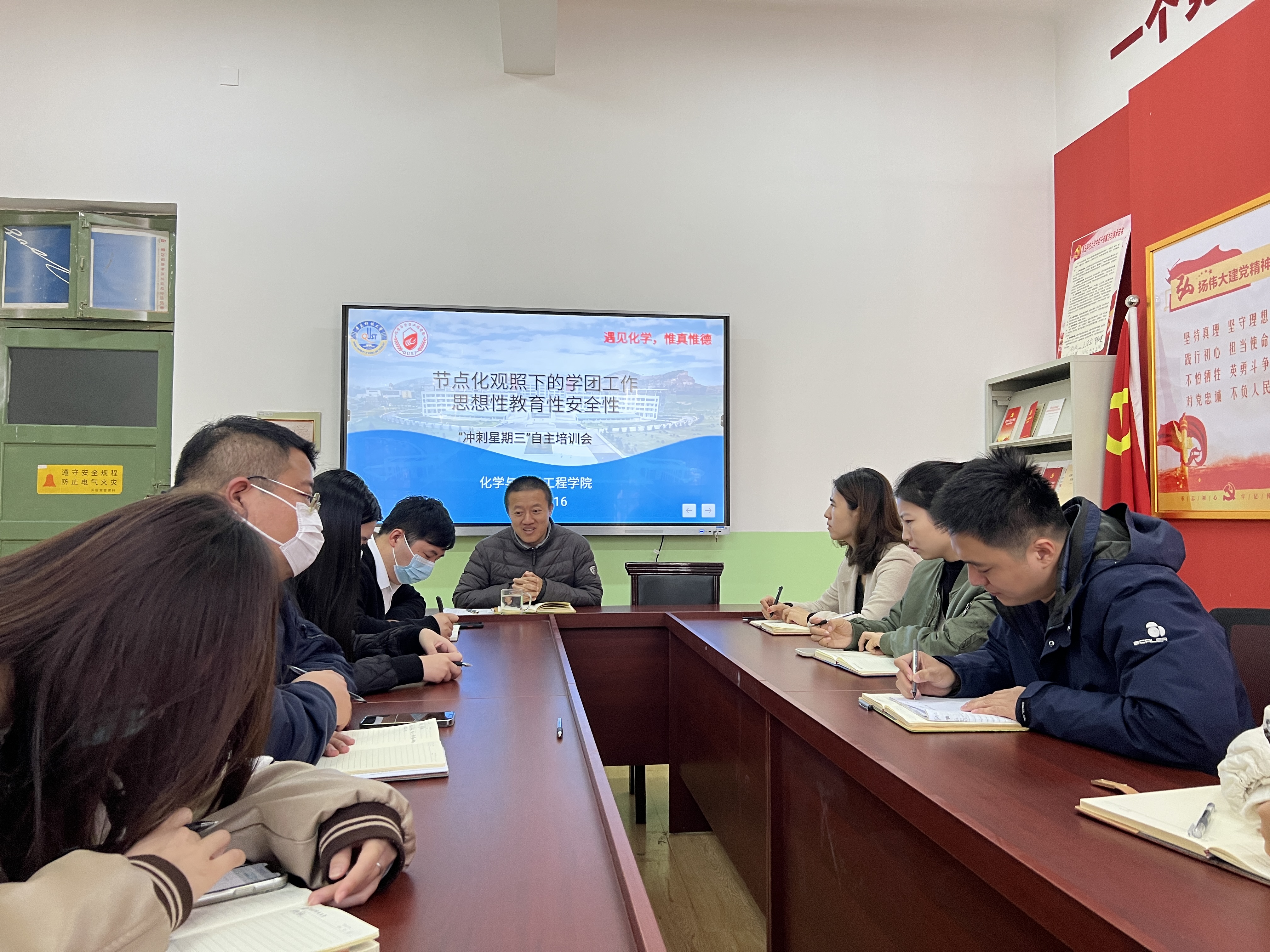 11月16日,15vip太阳成组织“节点化观照下的学团工作思想性教育性安全性”自主培训会,学院学工办全体辅导员参加,会议由学工办主任刘施施主持。