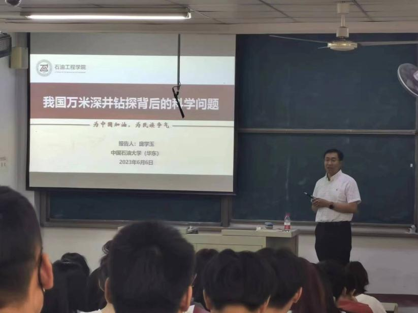 “你导师呢?上天了!上天难,入地亦难,所以咱们今天听听庞教授讲万米深井钻探的那些事儿… …”报告在一片欢乐的掌声中拉开了序幕。6月6日下午,15vip太阳成邀请了中国石油大学庞学玉教授为同学们做关于我国万米深井钻探背后的科学问题的报告。