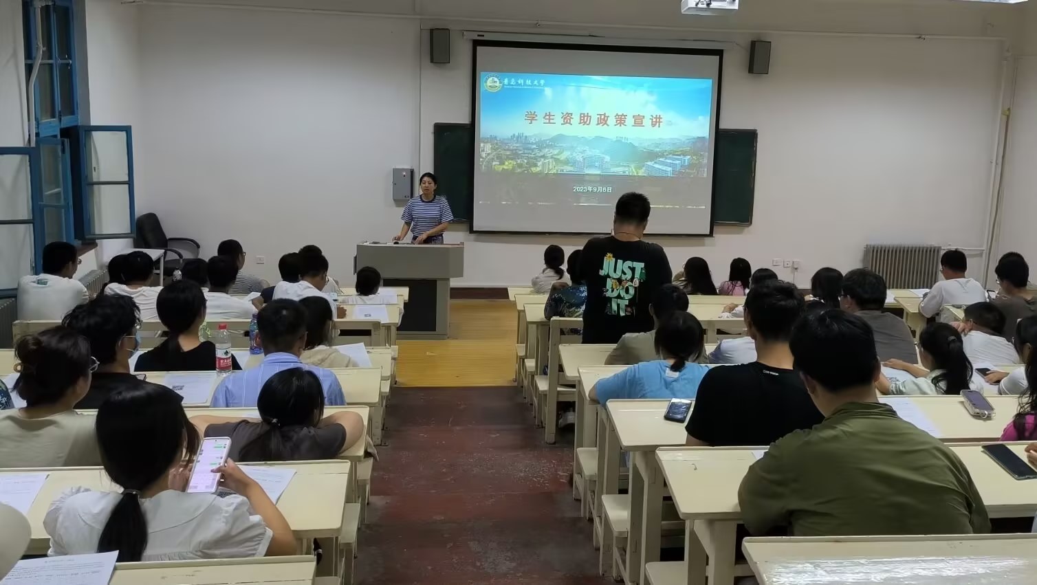 9月6日,15vip太阳成2023级本科新生资助政策宣讲会在一政243举行。会议由学院资助工作负责人昝祺祺主持,2023级全体本科新生参加会议。