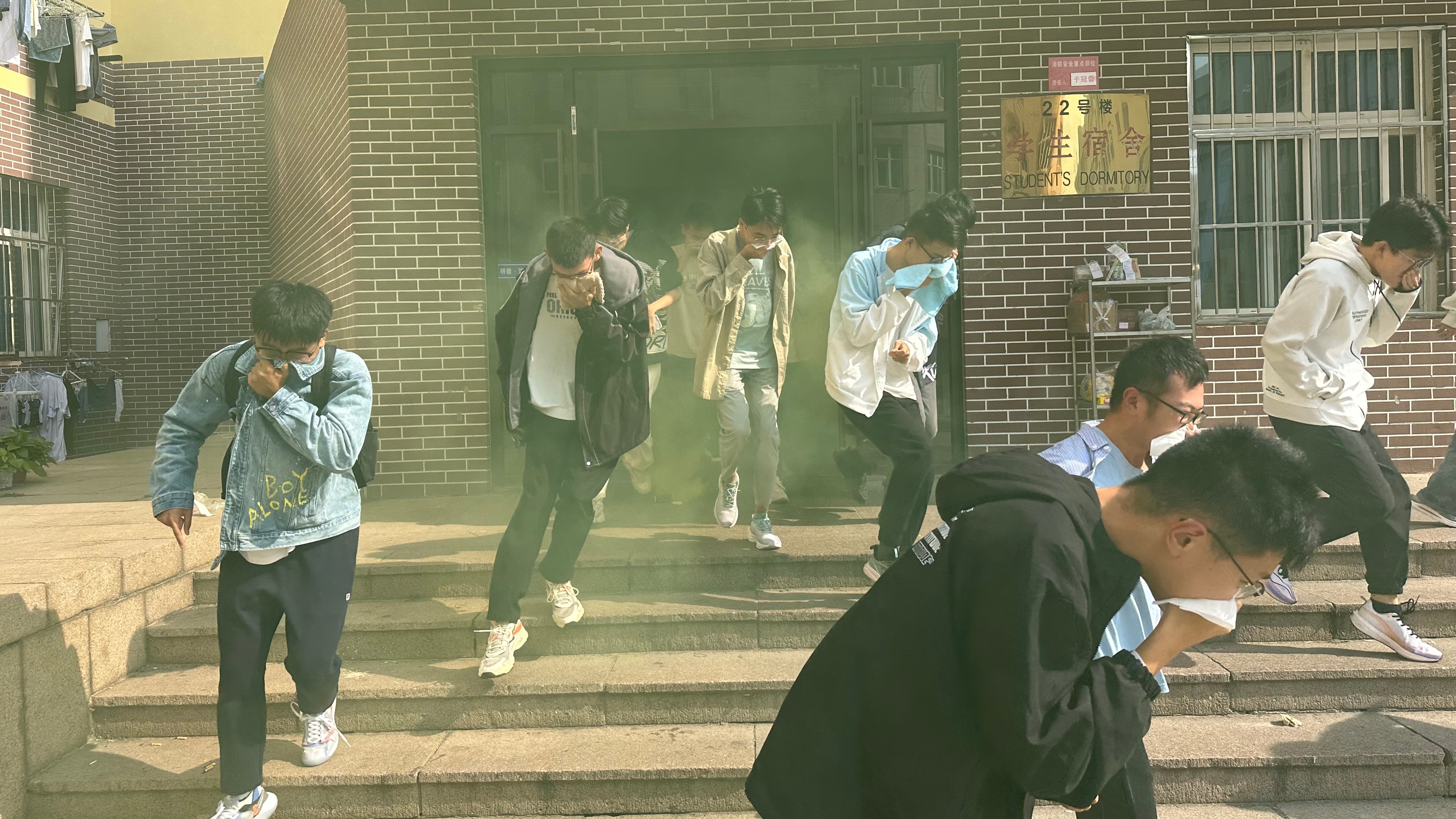 10月10日下午,在全国消防安全日来临之际,学院组织2023级新生在学生宿舍公寓楼和小五四广场举行了一场特殊的消防演练。这次演练是为了纪念全国消防安全日,同时也是为了提高同学们的消防安全意识和应对火灾的能力。