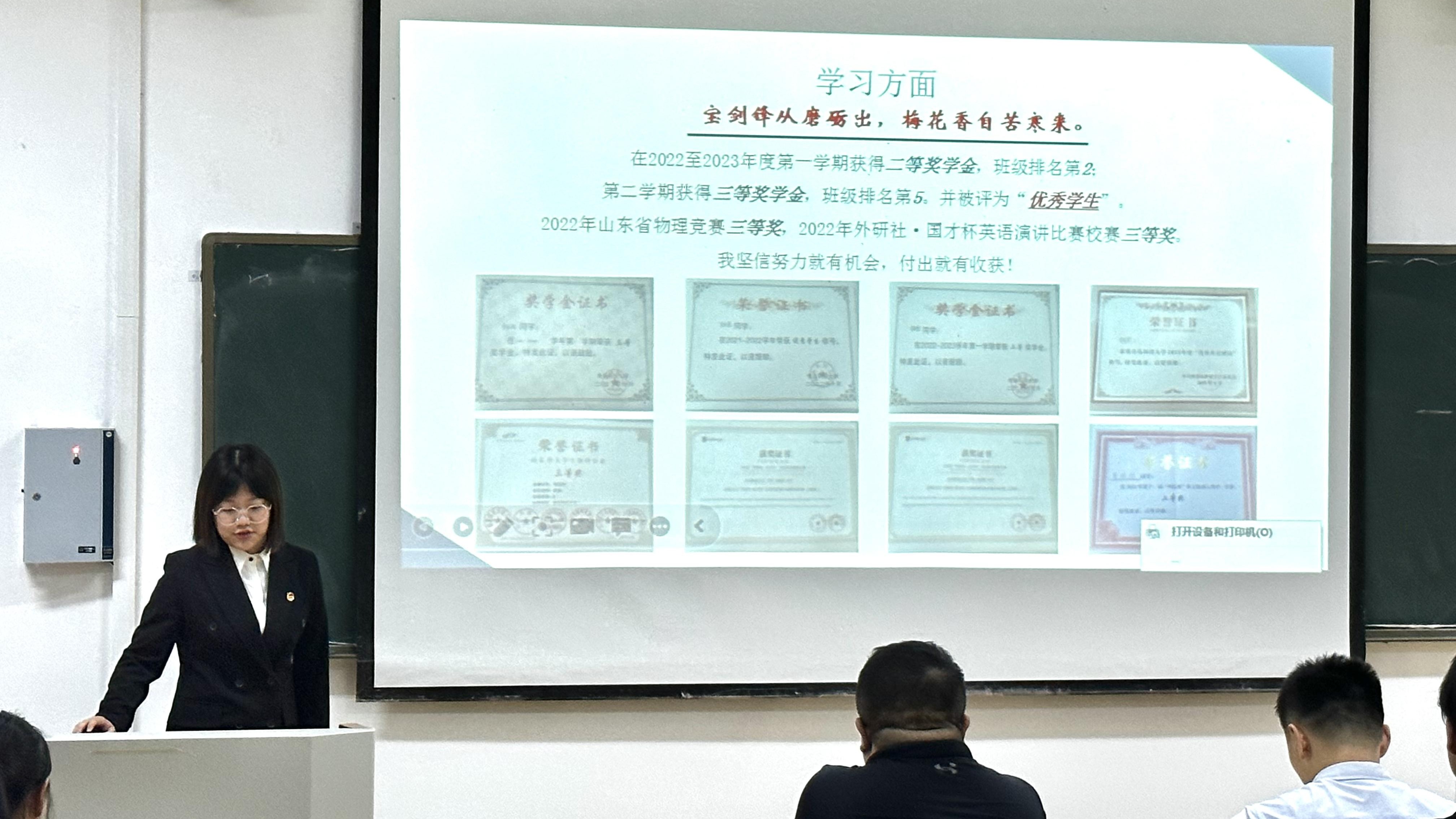 会上,昝祺祺介绍了国家奖学金、省政府奖学金的具体评选条件、学院评审方法、量化考核方式、申请人情况以及答辩具体流程等相关内容。参与答辩的14名同学们分别从思想政治、学习成绩、社会实践、荣获奖项等方面进行自我展示。他们不仅在专业素质上成绩突出,还在各项赛事、创新创业、志愿服务等方面表现优异,让评委们看到时代新化院学子积极向上的学习态度和努力拼搏的奋斗精神。