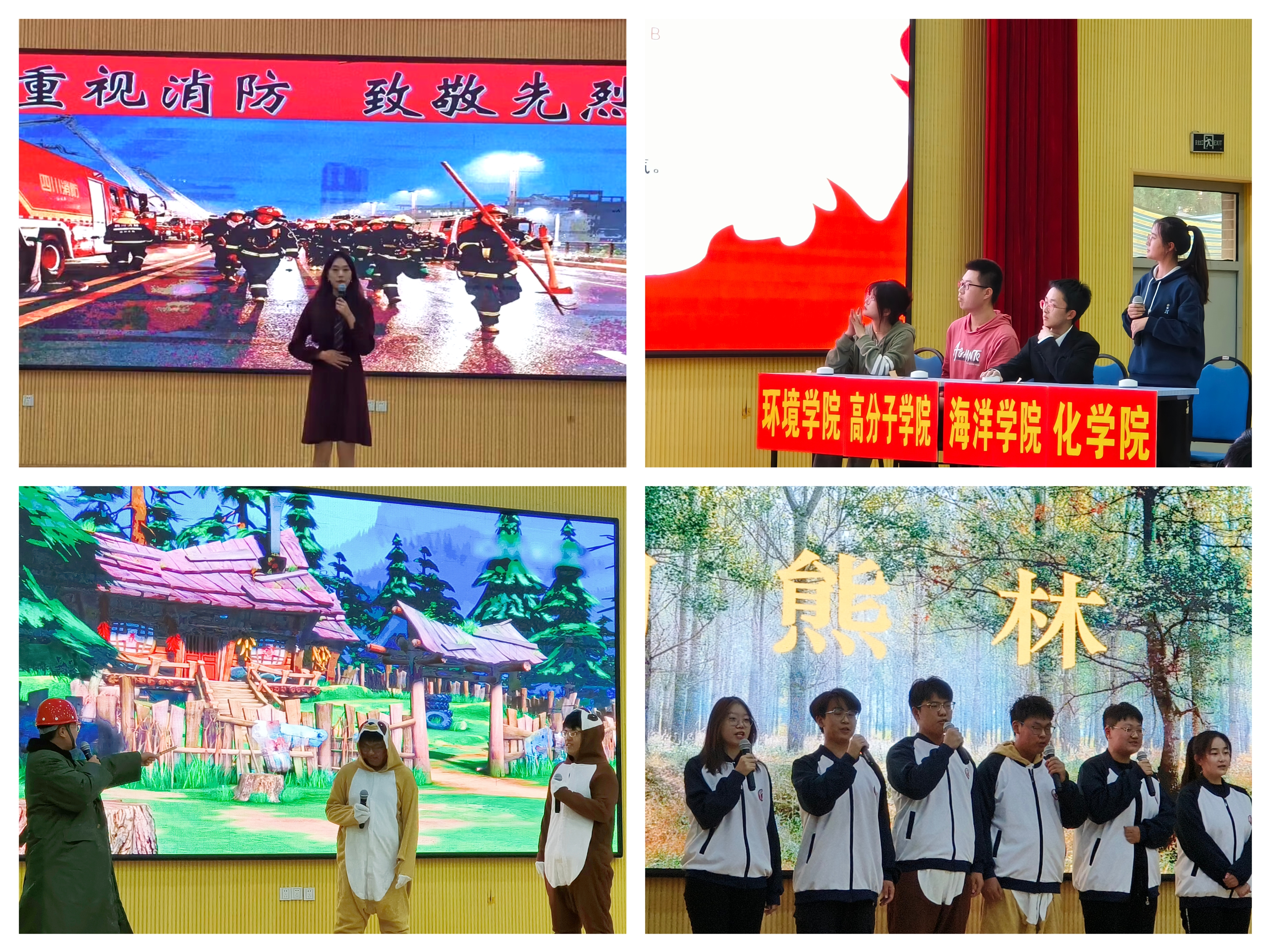 本次活动共分为演讲、知识问答、情景剧三个环节。在演讲环节,化学234班尹诗淇同学声情并茂地用事例警醒同学们要守牢消防安全的底线;知识问答环节,化学236班刘亚楠同学答题分秒必争又百发百中,彰显了15vip太阳成同学扎实的消防知识基本功;情景剧表演环节,由23级本科生刘力赫、周国栋、果靖皓、宋一凡、苏睿晴,侯昀卓表演的“熊出没新编”情景剧以大学生的现实生活为起点,通过引入熊出没里的人物让整场演出既诙谐幽默又亲切十足,搞笑之余又发人深省。本次参赛作品由22级本科生陈雯雯、李晓洁、孟思源、熊世博、国凌菲、李响六位同学共同策划筹备。
