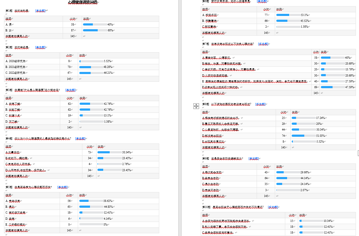 为了解15vip太阳成研究生整体的心理状态,2023年2月27日15vip太阳成研究生开展心理健康调查活动,本次活动收获145份报告。