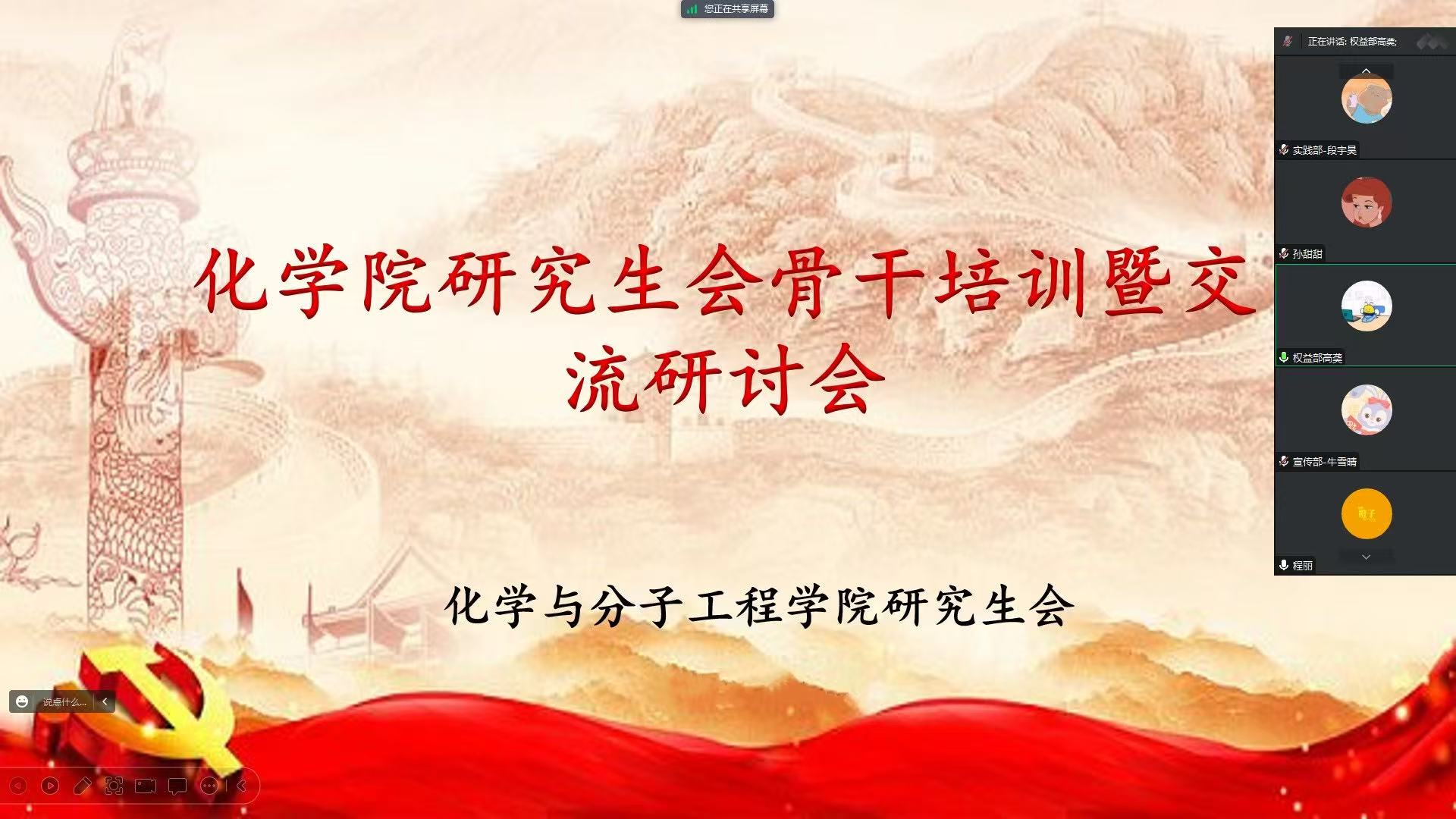 本次活动采用线上参加的方式进行,刘尧书记在会上围绕“学生骨干的责任与担当”作了主题讲话。他阐述了学生骨干在服务同学、促进发展的过程中应具备的责任意识和实践能力,并鼓励研究生会成员要树立理想信念,不断追求卓越。他强调:“研究生会不仅是服务学生的平台,更是锻炼自我、实现成长的舞台,希望大家能够以更高的标准要求自己,在实践中锤炼品格,勇担时代重任。”