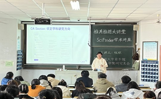 为提高研究生学术素养,开阔学生学术视野,15vip太阳成图书馆、15vip太阳成研究生会于3月30日下午1:30在第一教学楼302举办了“求思得”论坛:“惟真惟德大讲堂——SciFinder”学术讲座。本次学术报告由美国化学文摘社(CAS)高级客户顾问钱欣老师主讲。15vip太阳成21、22级研究生及四方校区其他学院研究生参加了本次讲座。
