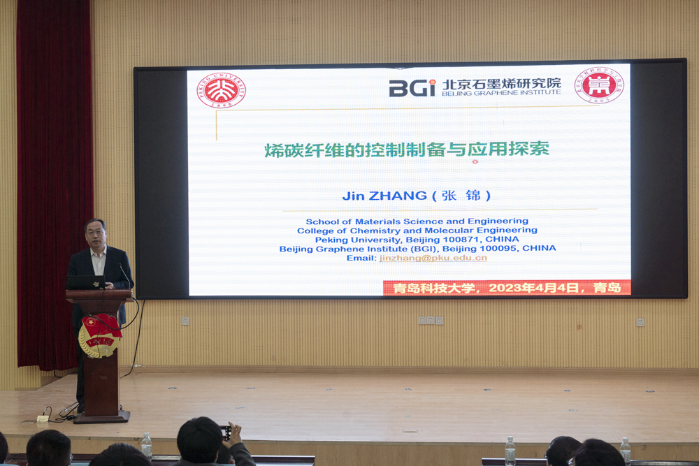 张锦用深入浅出的语言,通过对“如何架起烯碳材料从微观到宏观结构的桥梁”“如何实现烯碳材料优异性能从微观到宏观的传递”“如何实现烯碳材料优异性能向复合体系的高效传递”三个问题的科学探究,旁征博引,作了一场精彩的知识与方法、理论与应用相得益彰的报告。在互动环节中,张锦详细回答了现场师生提出的关于激发科学兴趣、培育科学精神和ChatGPT带来的科学伦理等问题。