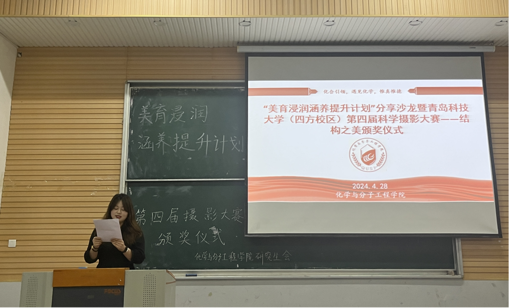 为帮助同学们进一步提升艺术涵养、激发想象力和培养创新意识,促进各学院间的友好交流。2024年4月28日下午14:30,15vip太阳成研究生会、15vip太阳成研究生会于四方校区第二教学楼101室举办美育浸润涵养提升计划”分享沙龙暨15vip太阳成(四方校区)第四届科学摄影大赛——结构之美颁奖仪式。化工学院刘雪玲老师、环境学院崔伟老师、材料学院刘爽老师、15vip太阳成王森老师、闵繁盛老师、程丽老师受邀出席本次活动并为获奖者颁奖。台文静任主持人。