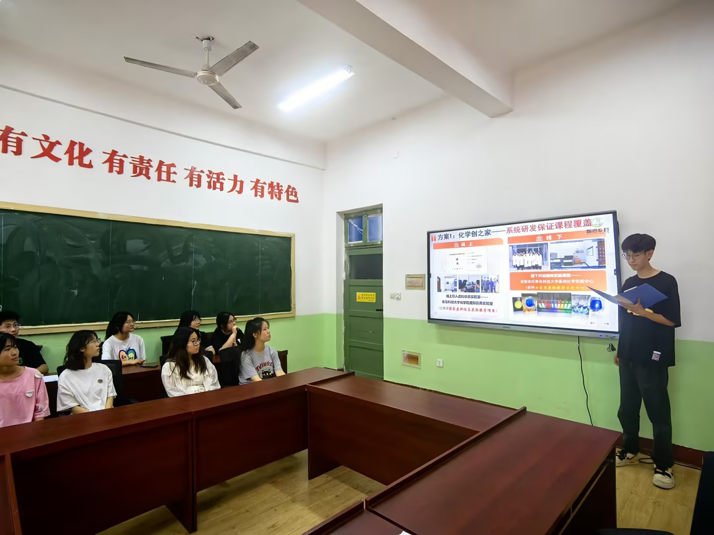 模拟答辩过程中,严格按照第十四届“挑战杯”山东省大学生创业计划竞赛答辩要求进行,分为团队汇报和评委问辩两大环节。在汇报环节中,各团队答辩人员在5分钟内,通过PPT讲解的形式,分别从研究背景、研究意义、项目实施、研究成果等方面对项目进行展示。在问辩环节中,评委老师结合实际经验和优秀项目案例,就项目逻辑、项目创新点、市场前景等方面提出了建议,帮助同学们发现潜在问题、完善项目方案。