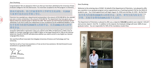 近日,应用化学(中美)专业148班学生李卓恒收到美国爱荷华大学的全奖offer,将于2018年8月份赴美攻读博士学位。