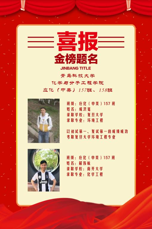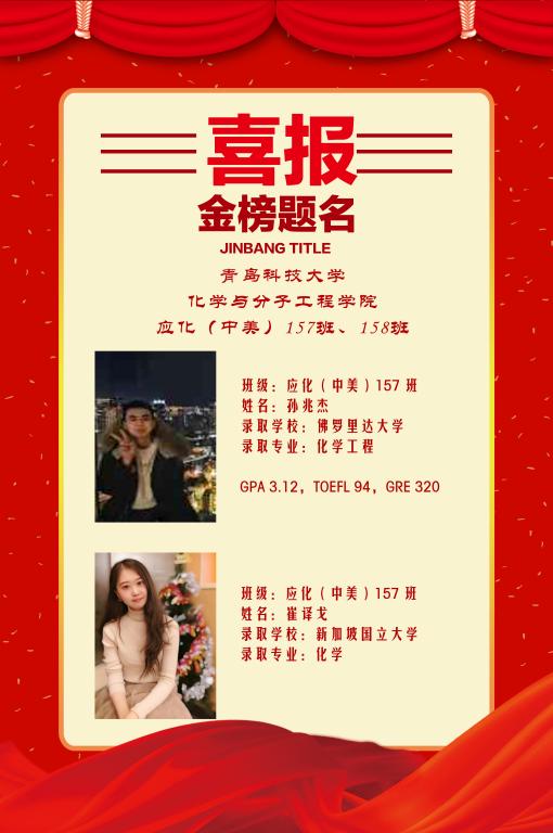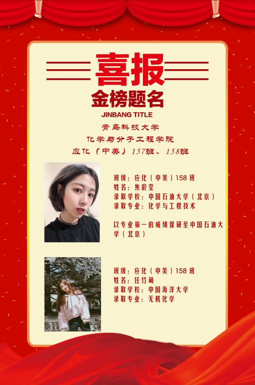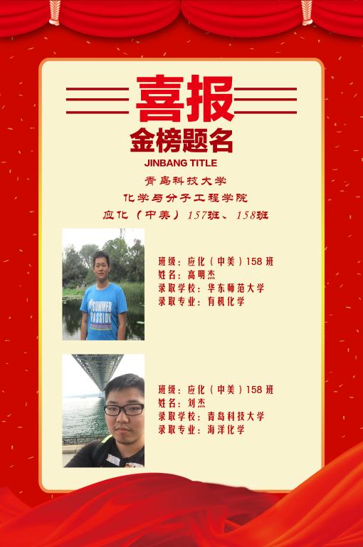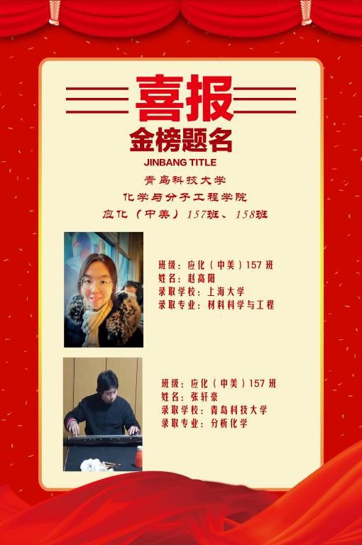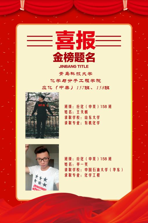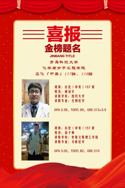 据统计,应化157班、应化158班共计56人,报考研究生共计38人,共22人考取研究生,其中5人赴国外读研,考研上线率近60%。