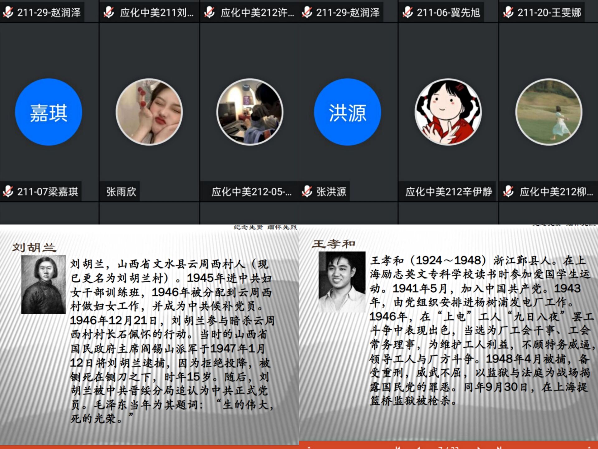 应化中美211团支部其余同学通过线上主题班会,追忆历史、缅怀先烈、弘扬中华民族优秀文化和传统美德,讲述自己心目中的革命先烈。